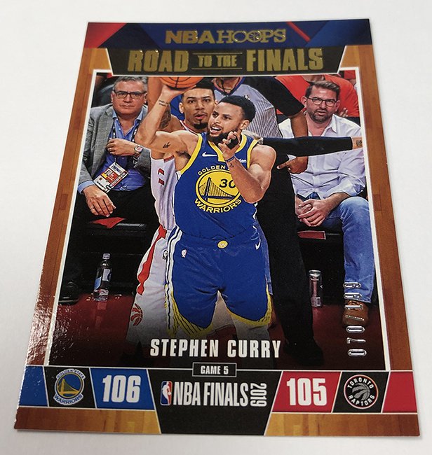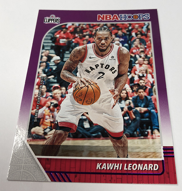 The Basics: There will be 24 insert cards per box in this one with new NBA rookies in their new uniforms as well as notable veterans in a base set. It will be accented by a Hoops Tribute set using past looks and past players while Hoops Art Signatures cards will be among the autographs. Other ink will include dual autos as well as Hot Signatures, Red Hot Signatures (/25) and Rookie Ink. ... Among the inserts will be Courtside as well as High Voltage, NBA City, Legends of The Ball, Zero Gravity and Artist Proof cards that will be limited to just 10 copies for Gold versions. There also will be parallels for inserts in this one. Another inclusion will be Road to the Finals cards that chronicle each 2019 playoff game with tiered scarcity as well as a short-printed NBA champions card. ... Packs will carry a suggested retail price of $3.33 ($80 per box).
