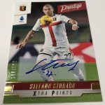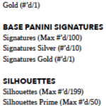 The Basics: For Italy's Serie A, Prestige appears to be the base set with 100 cards representing all 20 clubs. These will have five parallels per card (see bottom row below) as well as autographs that will parallel base cards with their own rainbows. Teased signers include Hirving Lozano, Cristiano Ronaldo, Stefano Sturaro and Aaron Ramsey for that one. There also will be Silhouettes cards with ink from Ronaldo, Edin Džeko and Andrea Belotti in the mix. There are also Double Coverage dual-mem cards with pairings teased being Ronaldo and Paulo Dybala as well as Marcelo Brozović and Stefan de Vrij. Among the inserts will be Forza.