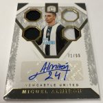 For Spain's LaLiga, there will be the Panini base design for 100 cards for 20 clubs. These, too, will have parallels -- see the first row below -- along with autographs from Gareth Bale, Lionel Messi, Álvaro Morata, Javier Hernandez and William Carvalho for starters. Its teased inclusions include Fuego, Fabric of the Game and Silhouettes, which will include ink from Lionel Messi, Luka Modrić, Luis Suarez and Fernando Torres among others.