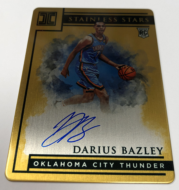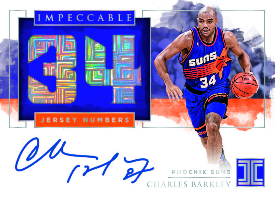 The Basics: There will be one silver insert, gold insert or Stainless Stars card per box along with the autos and three base cards or inserts. There will be Silver NBA logo, Gold NBA logo, Silver Draft logo and Silver HOF logo cards in the mix along with Draft and Hall of Fame logos on an ounce of .999 pure silver. ... Elegance Rookie Jersey Autographs will have a few parallels, among them being Holo Silver, Holo Gold and Holo Platinum, but no details for the full array or numbering were released. ... Among autographs will be Impeccable Stats, Jersey Number and Career Points cards produced to the appropriate amounts for their concept. There also will be Canvas Creations and Impeccable Victory. ... These boxes once again carry a suggested retail price of $500.
