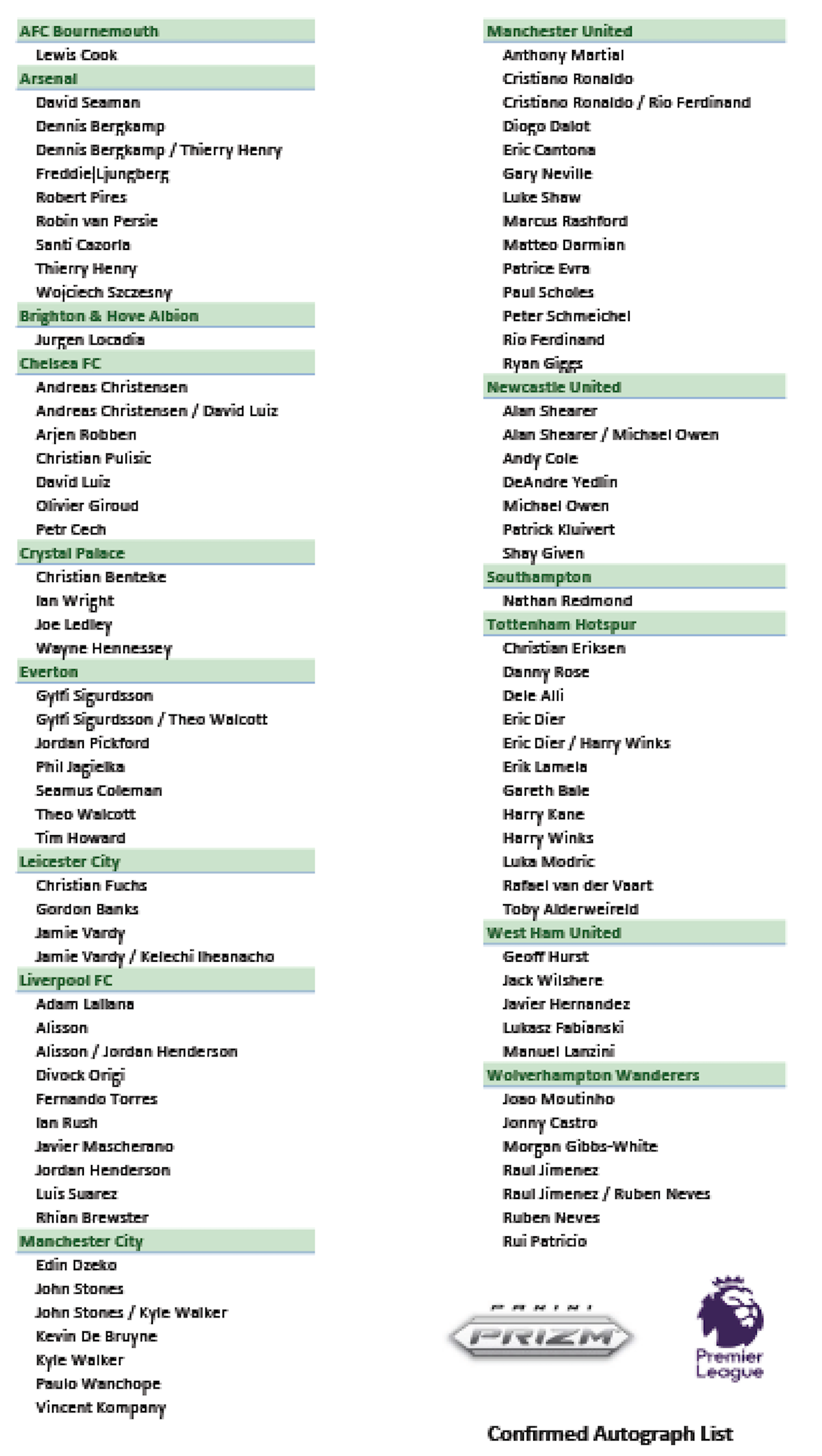 What's buzz-worthy: Prizm takes to the pitch for the Premier League for the first time with all 20 clubs represented in this one as part of a 300-card release loaded with parallels, inserts and ink.