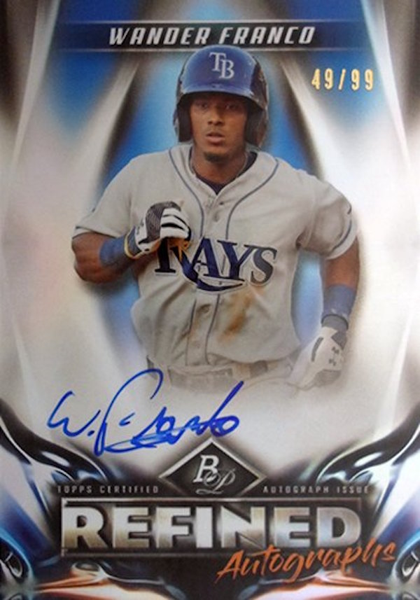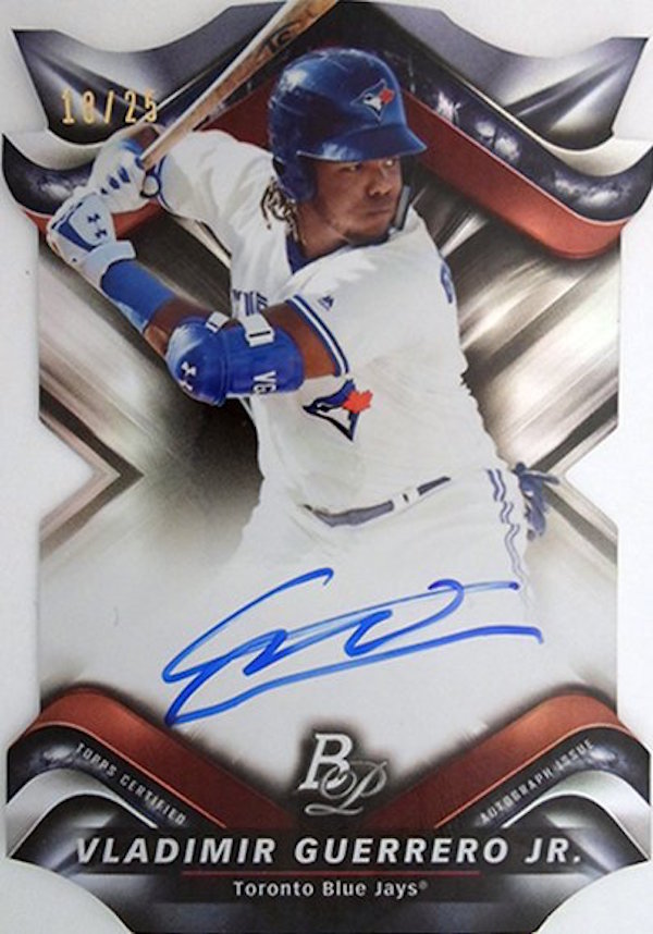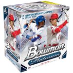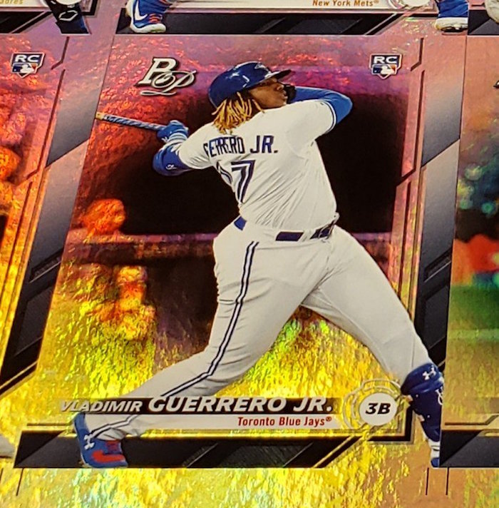 The Basics: Each pack will include three base cards and two Top Prospects cards for this retail-only release. The base set will consist of 100 cards with a selection of 10 photo variations and also four short-printed Rookie Cards atop those -- Pete Alonso, Fernando Tatis Jr. Eloy Jimenez and Vladimir Guerrero Jr. Vladdy also leads off the prospects set -- 100 cards there -- as well. ... Inserts will include Prismatic Prodigies, Renowned Rookies, Platinum Presence, Prolific Power and Gallery Preview cards. ... Autographs will be found for each of those sets as well as Top Prospects, Refined, Platinum Cut and auto-Relic sets -- Platinum Pieces and Platinum Patches. There also will be Relic inserts, Platinum Patches.
