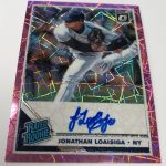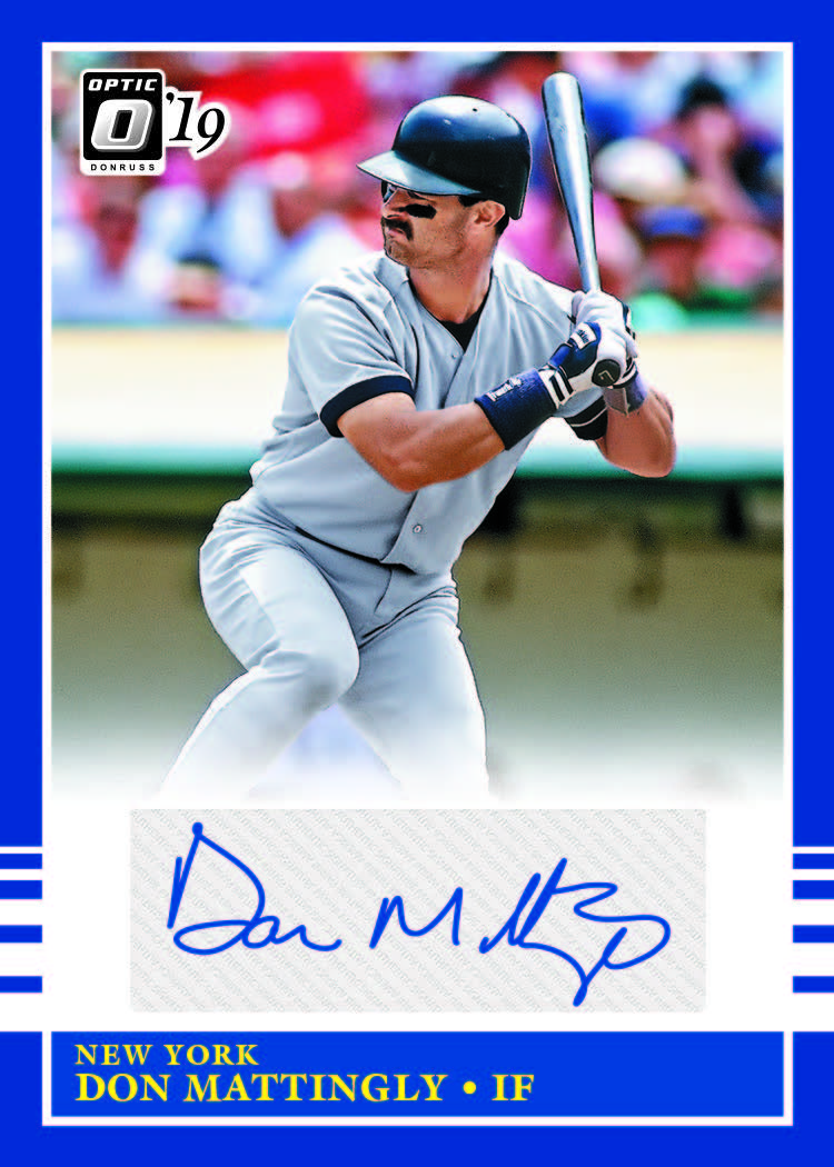 The Basics: This year, these boxes will include 17 inserts, five numbered parallels and the two autos unless it's an ink Hot Box and that will include five. There will be two of those per case while the other two will including 20 numbered Prizm parallels. ... Among the autos will be Rated Prospect (on-card sigs) for 15 players as well as Retro 1985 autos that will have six parallels -- Holo (/99), Blue (/50), Red (/25), Gold (/10), Green (/5) and 1/1 Gold Vinyl. Also in the mix will be rookie autos with a crop including Kyle Tucker, Vladimir Guerrero Jr. and Eloy Jimenez among others. Teased signers for the 1985 cards include Don Mattingly and Mike Mussina. ... Among the new inserts will be Mythical, Optic Illusion and Peak Performers as well as Red White and Blue 150th base parallels. The inserts will have Holo, Gold (/10) and 1/1 Gold Vinyl parallels. ... The base set will include 200 cards with 100 base, 50 Rated Rookies, 30 Diamond Kings and 20 All-Stars in the subsets. There will be at least 14 parallels per card on that front. ... Boxes carry a suggested retail price of $85 ($4.25 per pack).