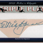 The Basics: Just 120 cases will be made for this one with the booklet cards made with 96-point stock for each panel. ... Among the autographs possible here? Babe Ruth, Ty Cobb, Tris Speaker, Mickey Mantle, Jimmie Foxx, Mel Ott, Dizzy Dean, Branch Rickey, Hank Greenberg, Joe DiMaggio, Willie Mays, Hank Aaron, Barry Bonds, Randy Johnson, Aaron Judge and Derek Jeter among others. ... The booklets will come with their own BAS letter of authenticity, while the single cuts are stickered by PSA/DNA or BAS on the backs beneath the cuts (not visible). ... This one arrives the week of Veterans Day and also will spotlight military veterans who played in MLB in a number of trios. Historic will make a donation to Military Missions in Action for every box made.