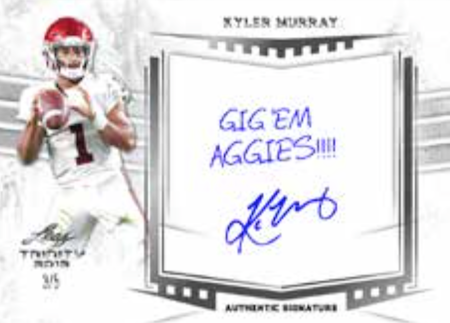 The Basics: Leaf promises "the hobby's most-powerful draft checklist chock-full of the draft's brightest stars" in this one with a focus on QBs, RBs and WRs. There will be Trinity Signatures, Trinity Clear autos and Trinity patch autos in this one with some of the teased names including Kyler Murray, Josh Jacobs, Dwayne Haskins, Will Grier, Daniel Jones, Drew Lock and Nick Bosa to name a few. There will be parallels in this one with a few hues seen in the gallery below but no details were revealed.