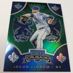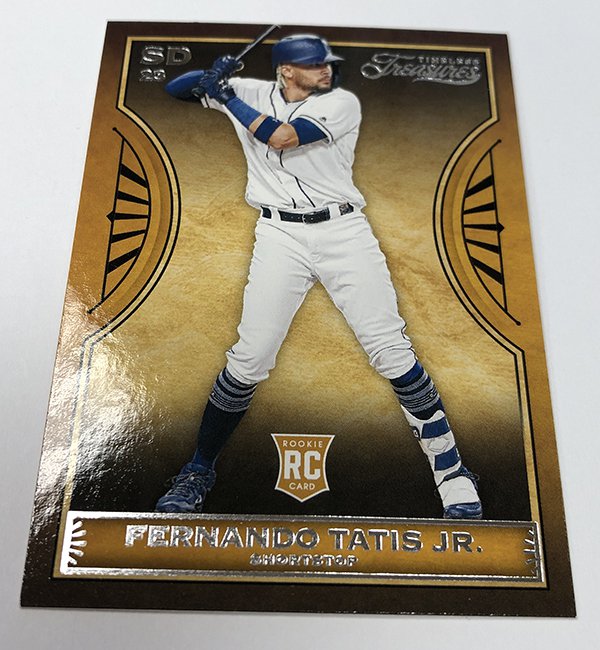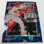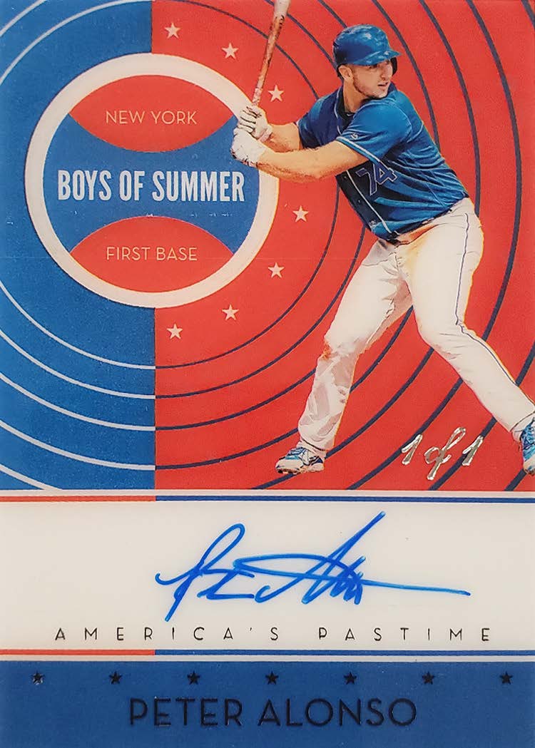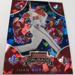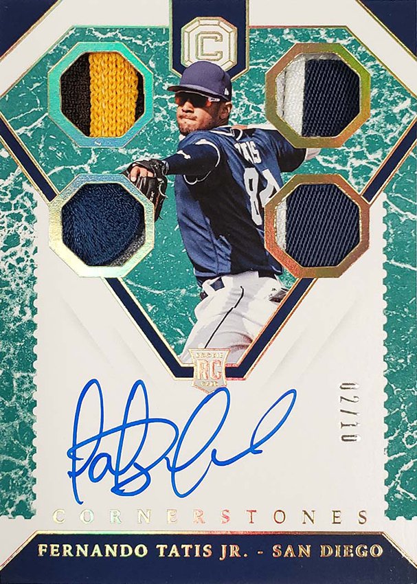 The Basics: There will be more than 20 brands in this one and each pack will include two Optichrome cards, three plastic cards and two holographic cards, while each box will include a pair of Spectra cards. ... Among the new brands or new looks for past releases to be found in this one this time are America's Pastime, Ascension, Playoff, Timeless Treasures, Absolute, Prime, Obsidian, Hometown Heroes and Titan. There will be on-card autos for rookies in the Rookie Cornerstones, Spectra Rookie Jersey Autographs and America’s Pastime Material Signatures sets. ... Among the plastic cards? Certified Mirror Gold parallels will be printed on PVC, while America’s Pastime will use a "PETG/C2S" stock on three on-card auto inserts that will include Boys of Summer, America’s Pastime and America’s Pastime Material Sigs. ... Obsidian inclusions will include standard cards as well as ink while a new Optichromed design will be called Titan. ... The Chronicles base set will be around 20 cards as it competes with other brands in this box that will include Crusade, Contenders Optic, Certified, Limited, Rookies & Stars, Score and Donruss among others. ... Contenders Season Ticket autos will include Cracked Ice versions (/23) with notables including Fernando Tatis Jr., Pete Alonso, Eloy Jimenez and Chris Paddack, while Obsidian autos will have parallels ranging down from 99 copies. ... Boxes once again will carry a suggested retail price of $96 ($16 per pack).