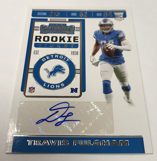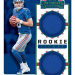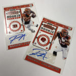 The Basics: The typical hobby box of this one will include at least five autos with one of those being on-card, while there also will be 19 different inserts and parallels atop the base cards. ... Rookie Ticket autos return with Rookie Ticket Stubs (/99 max), Rookie Playoff Tickets (/99 max), Rookie Championship Tickets (/49 max), Rookie Cracked Ice Tickets (/23), Rookie Clear Tickets (/10) and 1/1 Super Bowl Tickets and printing plates. There also will be Rookie Ticket Variations with different design touches and different photos. ... Veteran Ticket autos will include the likes of Patrick Mahomes II, Baker Mayfield, Ezekiel Elliott, Andrew Luck and Ben Roethlisberger with the same parallels but no Clear cards. ... New for this one will be 1998 Rookie Tickets (/20 max) and 1999 Rookie Ticket (/20 max) with Gold (/10) and 1/1 Platinum parallels. ... There also will be 1/1 Golden and Silver Tickets (/2) with the gold cards on 14k gold. ... Among the inserts will be Rookie of the Year Contenders, MVP Contenders, Legendary Contenders, Winning Ticket and Round Numbers. ... Also in the mix for autographs will be MVP Contenders (/49) with Gold (/10) and 1/1 Platinum parallels as well as Rookie of the Year Contenders (/99) with the same parallels. Joining those are Contenders to Canton autos (/20) with the same parallels. ... These 18-pack boxes carry an increased suggested retail price of $175 ($9.72 per pack).