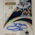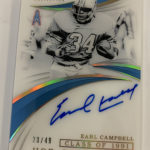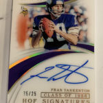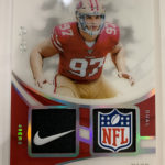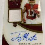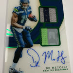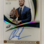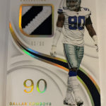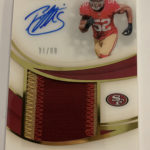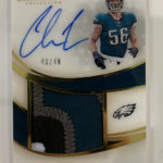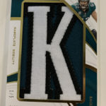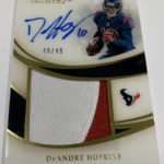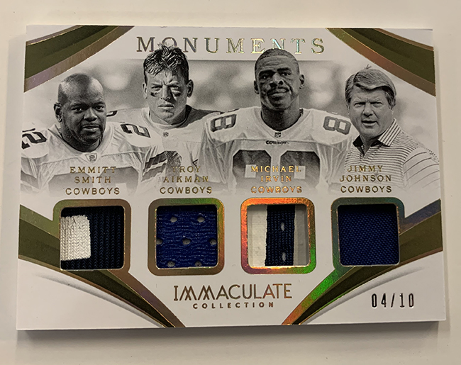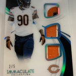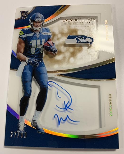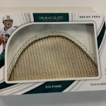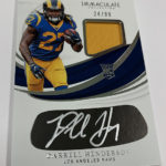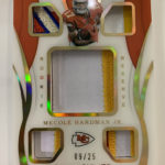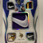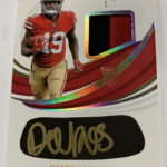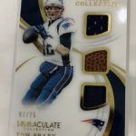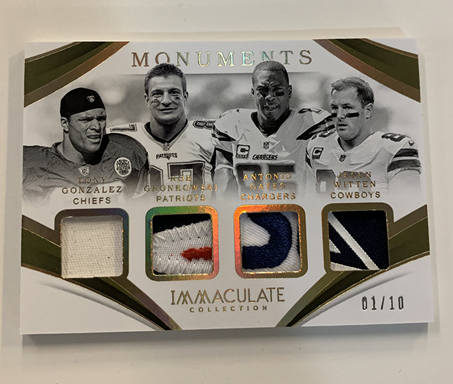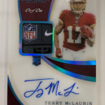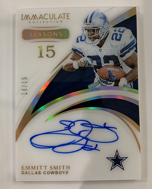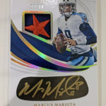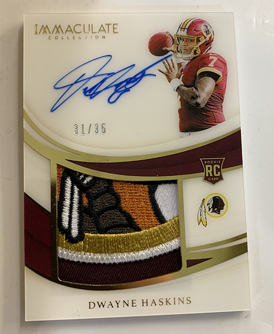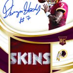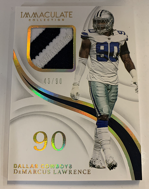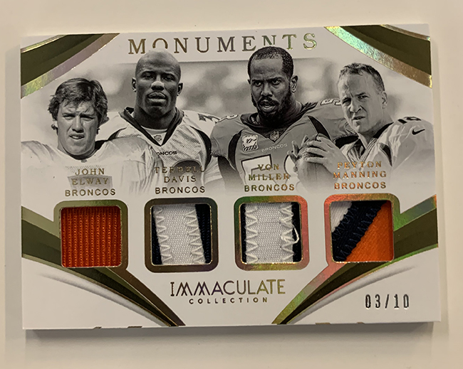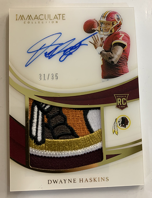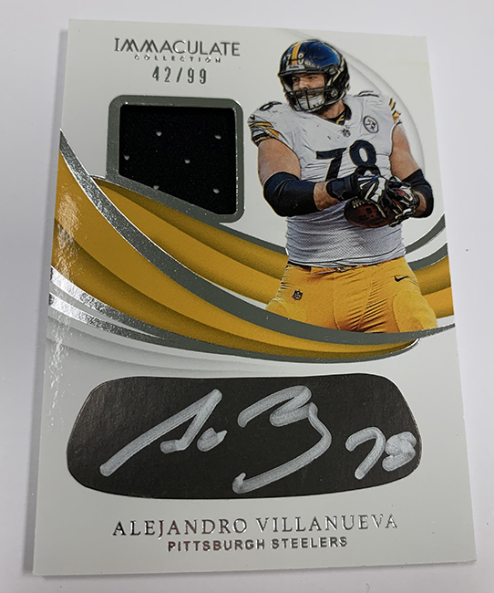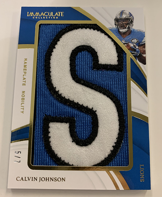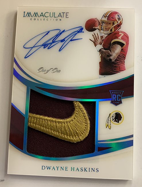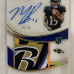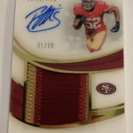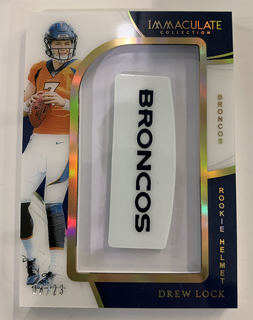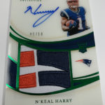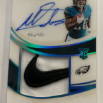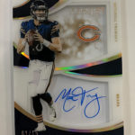 The Basics: Rookies will get their first on-card rookie patch autos in this one, according to Panini, with on-card ink to be found for the RPAs, premium patch rookies, Players Collection and Immaculate Number RPAs for starters. ... There will be a few on-card auto inserts this time around with Pro Bowl Signatures, Marks of Greatness and Draft Class Signatures, while eye black triple autos are also new inclusions. Among memorabilia cards will be the new Monuments cards (prime parallel /10) while jumbo mem cards will include team- and brand-logo cards as well as laundry tags and NFL shields for starters. ... RPAs (/99) will have parallels -- Gold (/25 max) and 1/1 Platinum tags and NFL shield cards. Premium patch rookie autographs will have the same parallels and volume, while only top players in NFL history are found in the Mark of Greatness set (/25 max). ... Joining those will be acetate autos in the Immaculate Player Collection set (/99) with parallels including Gold (/5) and 1/1 tags. ... Among the memorabilia options will be 1/1 dual NFL shields as well as Sneak Peek cards that are part of a jumbo-mem lineup that includes gloves, helmets, cleats and more with cards rarer than 25 copies apiece. New will be Rookie Reserve mem cards with five swatches per card (/25) with 1/1 cards for the brand logo and NFL shield versions. ... Boxes will once again carry a suggested retail price of $400.