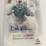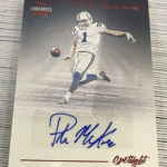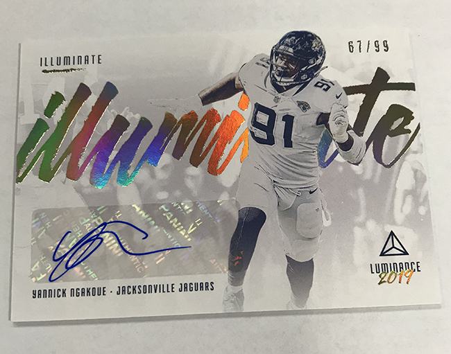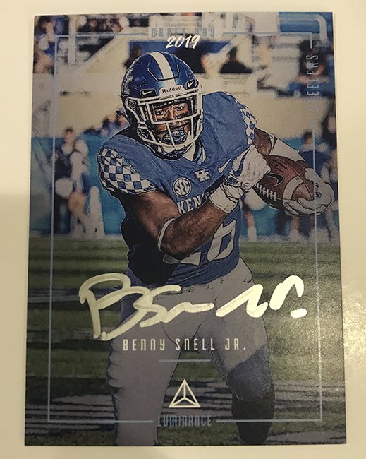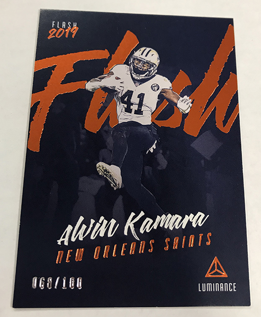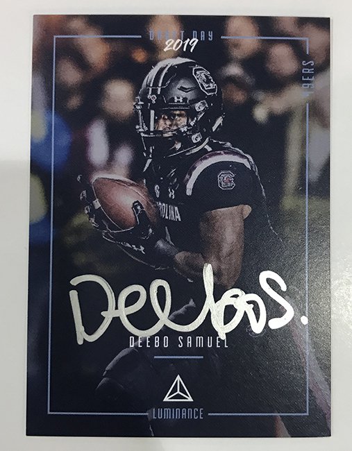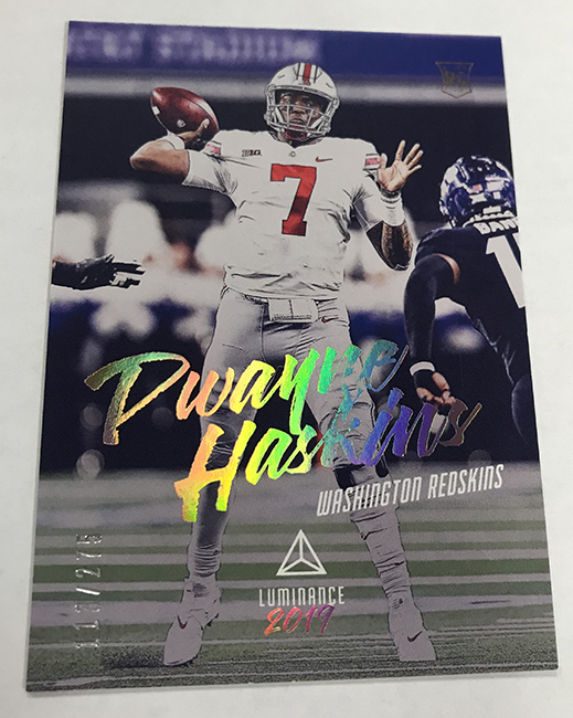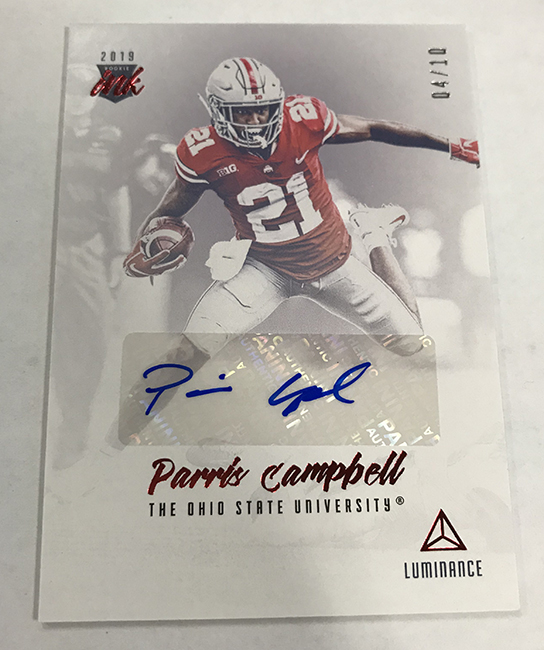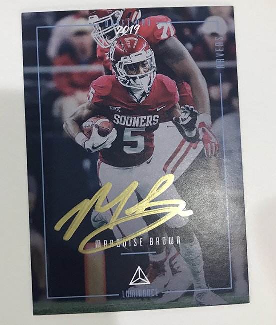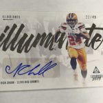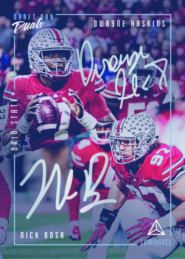 The Basics: Boxes of this one will include five parallels, four inserts and 12 Rookie Cards in a typical break. ... The base set will have Gold (/275) Blue (/99), Green (/49), Orange (/25), Red (/10), Pink (/5) and 1/1 Platinum parallels for both veterans and rookies. ... Among inserts will be Luminary and Lightspeed with each having Orange (/100) and 1/1 Platinum parallels and other cards to chase will include Flash, Vintage Performers, Dynamic and Dynamic Rookies. ... Among memorabilia cards will be Jumbo, which will have Prime Gold (/49), Red (/25) and 1/1 Platinum parallels as well as Bright Beginnings and Vintage Material cards. ... For autographs there will be Spotlight Signatures, Draft Day Signatures (one per box) and Draft Day Dual Signatures. The DD cards will have variations signed with blue (/5) and gold ink (/25). ... These once again will carry a suggested retail price of $30 per 10-card pack or $120 per box.