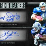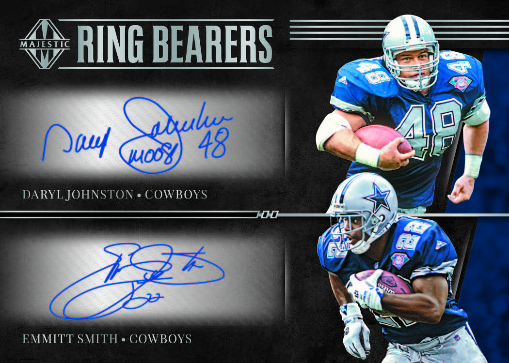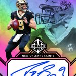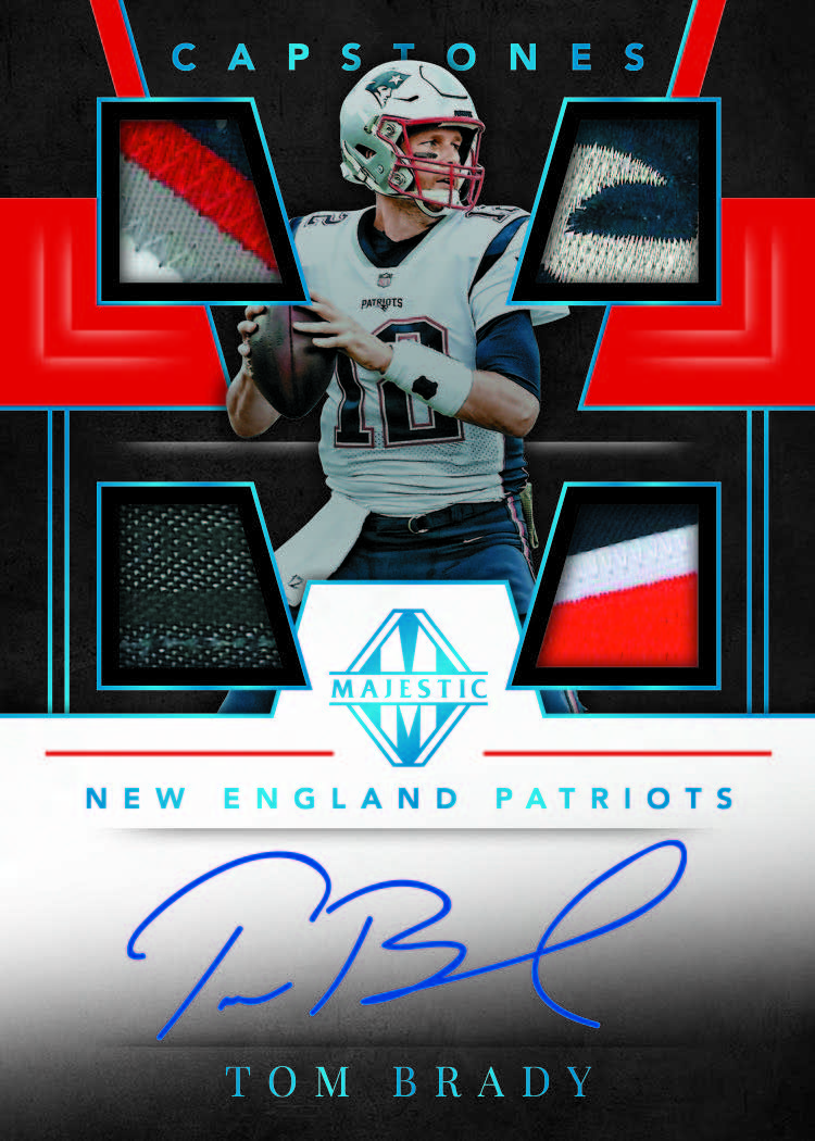 The Basics: There will be one base card and one parallel card per box atop of the hits in this third release for the brand, which will have a base set (/75) with four parallels -- Gold (/50), Holo Silver (/25), Holo Gold (/5) and 1/1 Platinum. ... Among the autographed cards here will be Capstones, Scripted Swatches Royal Signatures, Rookie Signatures, Highly Revered, Ring Bearers and Mystic Marks. Capstones (/99) will have Gold (/49), Holo Silver (/10), Holo Gold (/5) and 1/1 Platinum parallels, while the Rookie Scripted Swatches (/199) will have those same parallels. Royal Signatures will spotlight the best past and present players and be limited to just 99 copies with the same parallels but with Golds capped at 25 max. Majestic Rookie Signatures (/199) will have the same but with Golds at 99. ... Highly Reverend and Mystic Marks will be among the rarest at just 10 copies per standard card in each set and just two copies per Gold parallel with a 1/1 Platinum version. Ring Bearers also will be tough at five copies per card with Gold (/3) and 1/1 Platinums in the mix. ... Rookie Materials cards will be limited to no more than 49 copies with Gold (/25) and 1/1 Platinum versions. ... Other auto sets will include Magnificent Signatures, Marvelous Signatures and Imposing Signatures, while memorabilia fans can also hunt for Astonishing Arms, Distinguished Defenders, Unsung Warriors, Show Stoppers, Icons and Exalted Triple Materials cards. ... Other multi-auto cards will include Hall of Fame Descent Duals, Team Signs Duals, Super Bowl Teammate Duals and Team Signs Triples. ... The suggested retail price on these boxes is $300.