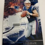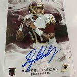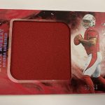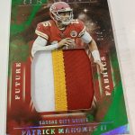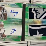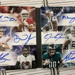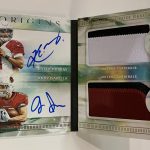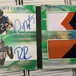 The Basics: The base set of this one will include 100 cards for top veterans with Red (/299), Orange (/175), Blue (/99), Turquoise (/25), Gold (/25), Green (/5) and 1/1 Black parallels. ... For memorabilia card fans, Rookie Jumbo Jerseys will be limited to 199 and parallels will include Red (/99), Orange (/75), Blue (/49), Turquoise (/25), Gold (/10), Green (/5) and 1/1 Black cards. Joining them are Origins of Greatness duals (/49) with past and present pairings and only Gold, Green and Black parallels at the same volumes. ... For autographs there are a number of options, including Passing Stars, Rushing Stars and Receiving Stars that will all be limited to no more than 25 copies with parallels down to 1/1 Black -- and "an increased number of cards inscribed with a personal touch." The rookie patch autos will have Red (/99), Orange (/75), Blue (/49), Turquoise (/25), Gold (/10), Green (/5), and 1/1 Black Nike Swoosh parallels. Origins autos will have rare gold-ink versions to chase. Meanwhile, booklet autos will include Six Star for rookies (/10) with Gold (/5) and 1/1 Black versions as well as Rookie Stars duals with on-card ink and prime pieces. They will be limited to 25 with Gold (/10), Green (/5) and 1/1 Black versions. ... Boxes once again carry a suggested retail price of $100. ... Note: Rookies' cards are shown using last year's rookies.