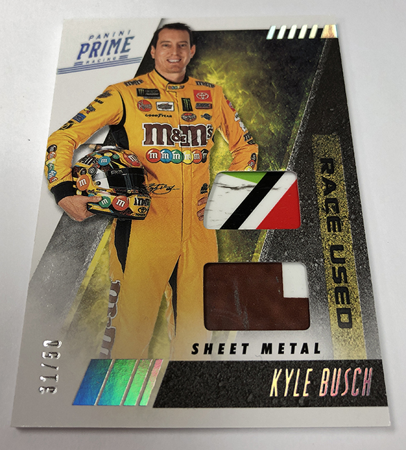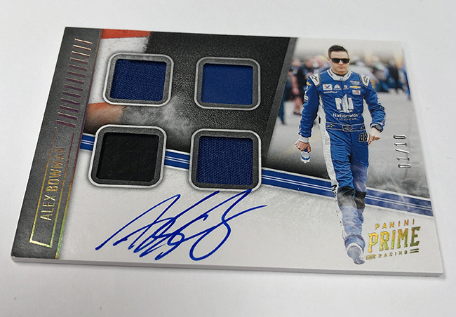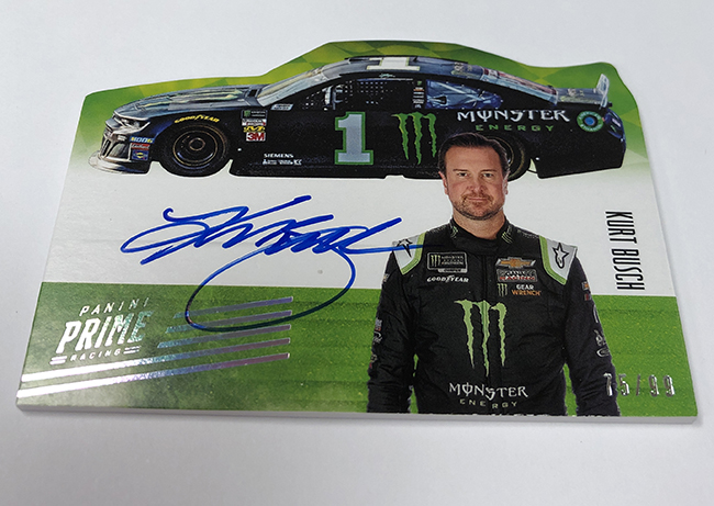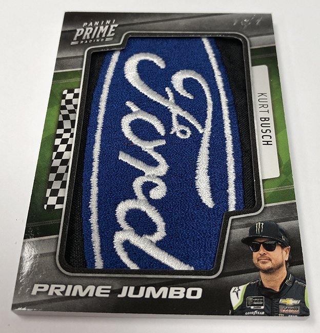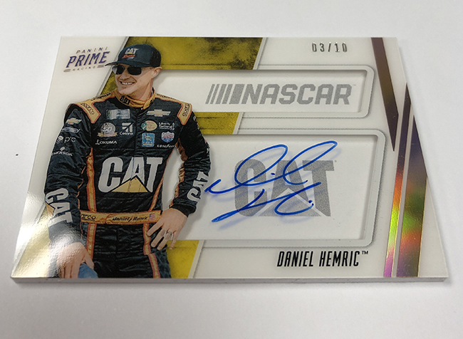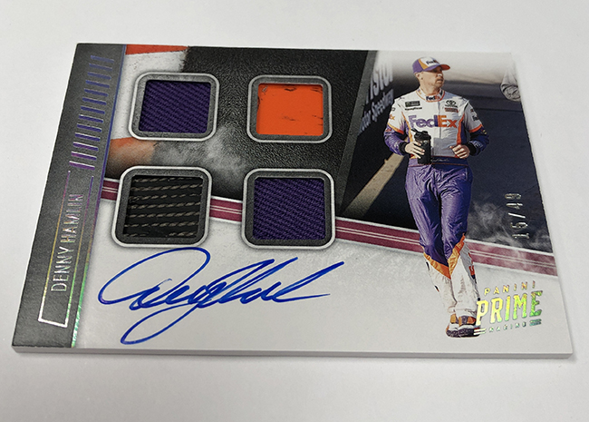 What's buzz-worthy: Panini America brings this hit-driven product to the track for another lap with "another insane amount of beautiful prime jumbo patches" and "most on-card autographs of the 2019 season."