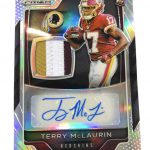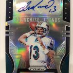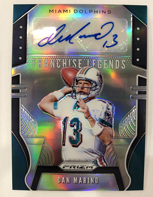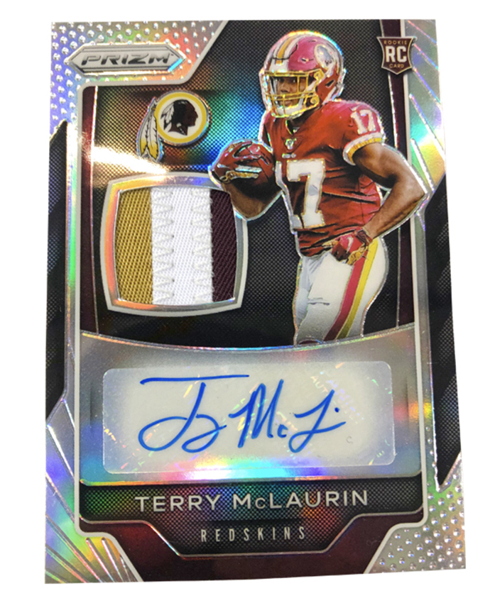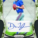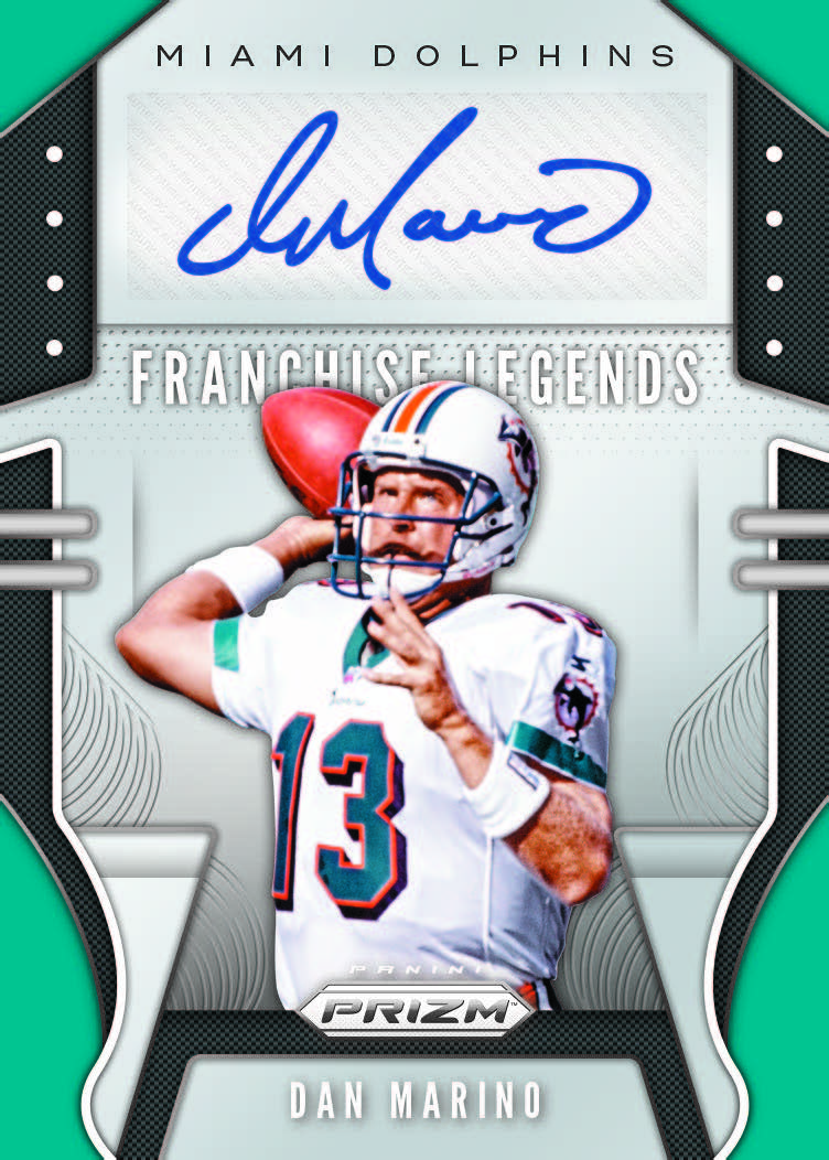 The Basics: There will once again be nine serial-numbered Prizm inserts per box along with 24 Rookie Cards, four inserts and one Silver rookie or Prizm parallel per box. New this time will be Blue Ice and Green Scope Prizms, while other new inclusions among inserts will be Aurora, Illumination, Class Acts, Breakthrough and Color Blast cards. These inserts combine to fall just one per case and Color Blast inserts will be found roughly one in every 10. ... There also will be new Sensational Signatures, Flashback Autographs and Franchise Legends Signatures to chase. ... Parallels of the base set and rookies will include Silver, Orange (/249), Blue Wave (/199), Hyper (/175), Red Wave (/149), Blue Ice (/99), Green Scope (/75), Purple Power (/49), Camo (/25), Gold (/10), Gold Vinyl (/5) and 1/1 Black Finite. Rookie patch autos will be one per case with no more than 99 copies with Purple (/49), Gold (/10) and 1/1 Black Finite parallels. Joining them will be rookie autos with Red Wave (/149), Green Scope (/75), Purple Power (/49), Camo (/25), Gold (/10), Gold Vinyl (/5) and 1/1 Black Finite versions. ... There also will be Franchise Legends autos that will have Blue Ice (/99), Green (/75), Purple (/49), Camo (/25), Gold (/10) and 1/1 Black Finite versions. ... Boxes carry a new suggested retail price of $150 ($12.50 per 12-card pack).