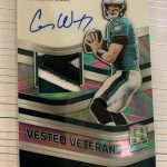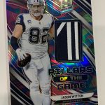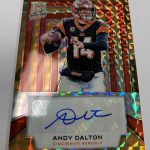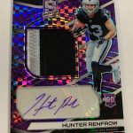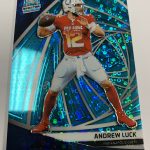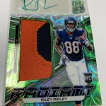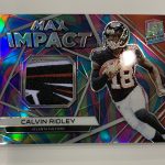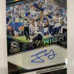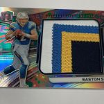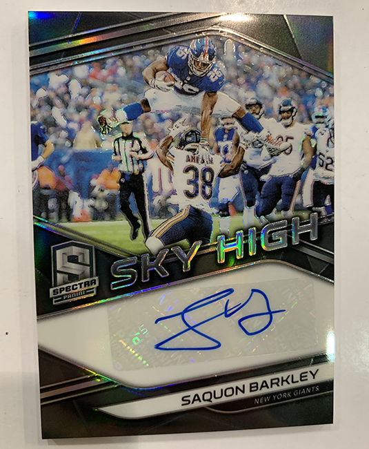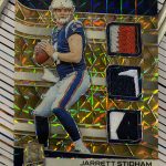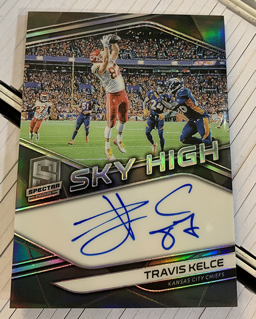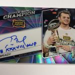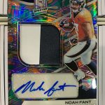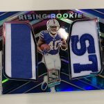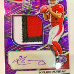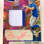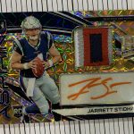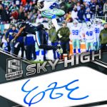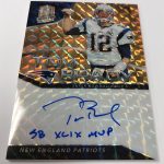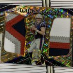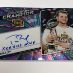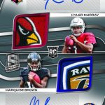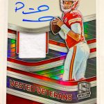 The Basics: The 150-card base set (/99) will be a slow build with just five base cards or parallels per box along with one insert card. The parallels will include Blue (/75), Blue Diecut (/40), Green (/35), Green Diecut (/30), Pink (/25), Pink Diecut (/20), Orange (/15), Orange Diecut (/10), Psychedelic (/5), Marble (/4), Nebula (/2) and 1/1 Gold. That same parallel rainbow will be in play for rookies. ... Among the other inclusions will be Rookie Aura (/99) with Blue (/50), Green (/35), Pink (/25), Orange (/10), Psychedelic (/5), Marble (/4), Nebula (/2) and 1/1 Gold versions. ... The Tom Brady Tribute set will spotlight his six Super Bowl wins and there will be on-card autographed versions limited to just four copies per card. Joining those on the auto front will be Sky High Signatures, Super Bowl Champion Signatures, Illustrious Legends and Vested Veterans. ...Rookie ink will be found in a few sets with Rookie Patch Autos (/99) having the same rainbow of parallels as the base cards but without diecuts and with a slightly higher volume in spots. Also in the mix will be Radiant Rookie Patches (/199) with the same parallels and Rookie Dual Patch Autos (/30 max) with Purple (/25), Pink (/20), Orange (/15), Black Light (/10), Psychedelic (/5), Marble (/4), Nebula (/2) and 1/1 Gold versions. ... Other new inserts in this one will include Sky High Signatures, Afterburners, Masked Marvels, Rookie Aura and High Voltage. ... Packs once again carry a suggested retail price of $75 apiece ($300 per box).