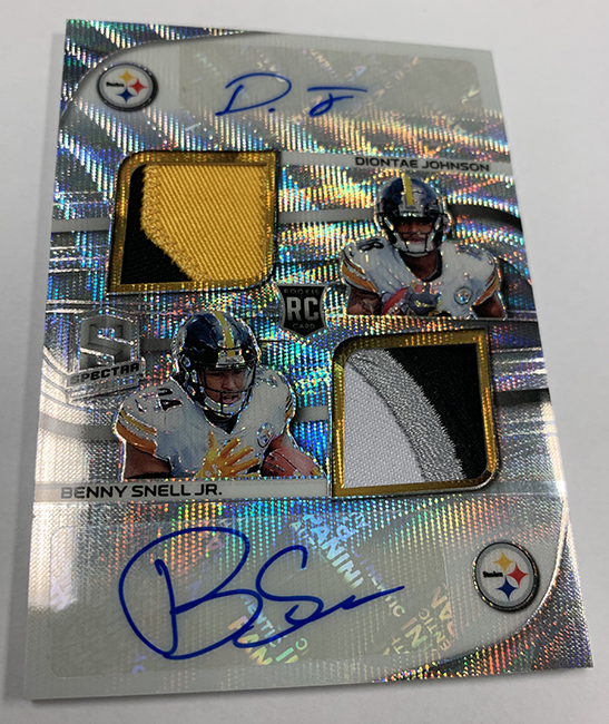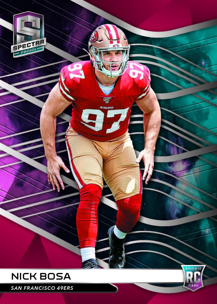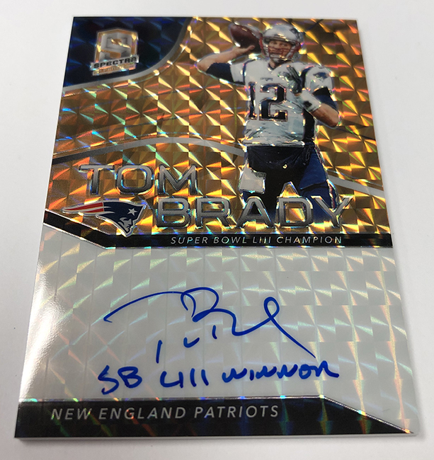 What's buzz-worthy: Spectra is back with a new round of colorful designs, new rookies and plenty of parallels as well as new inclusions that include a Tom Brady tribute set for starters and new scarce Psychedelic parallels (above) seen across the entire product.