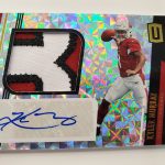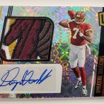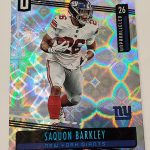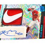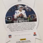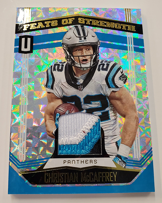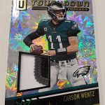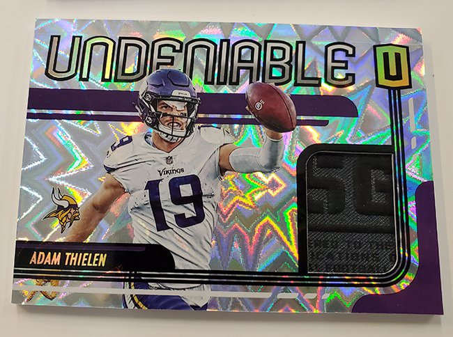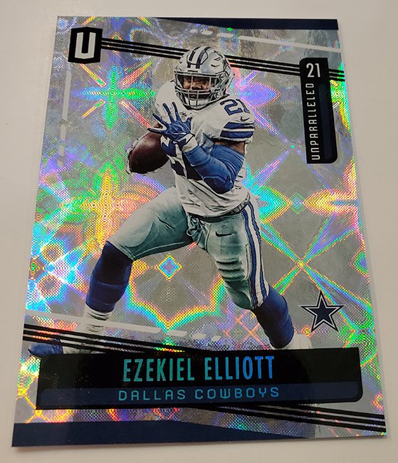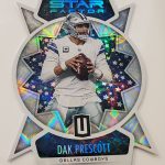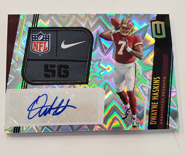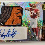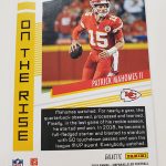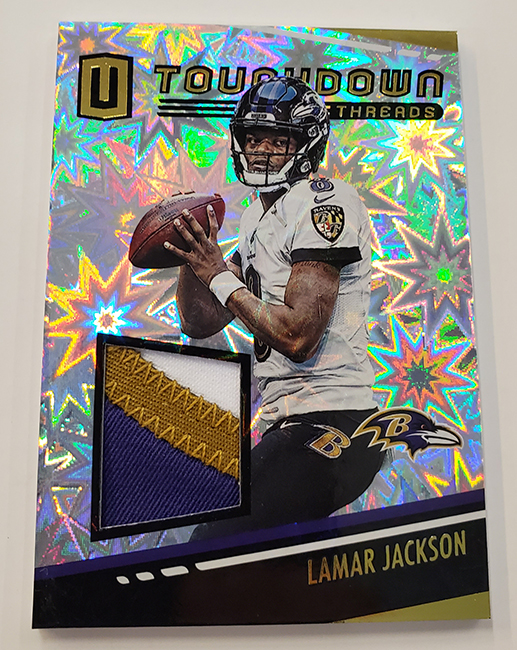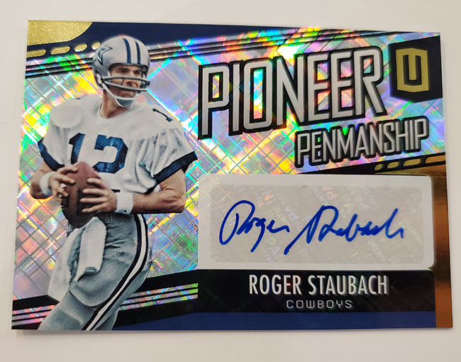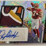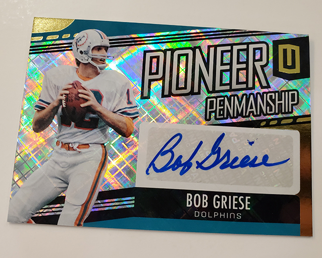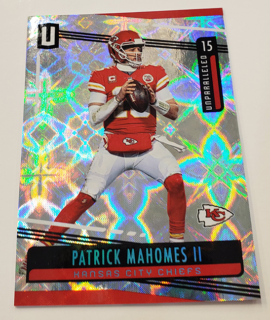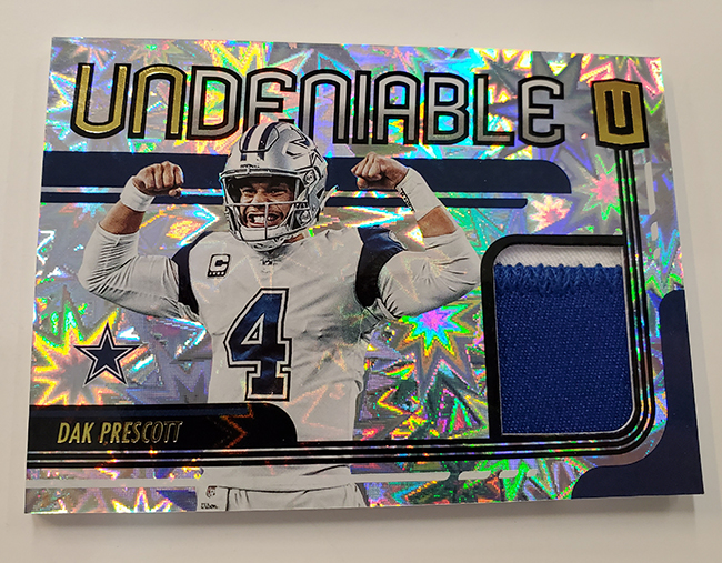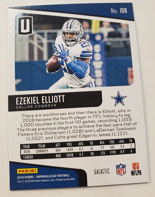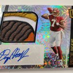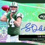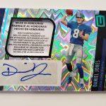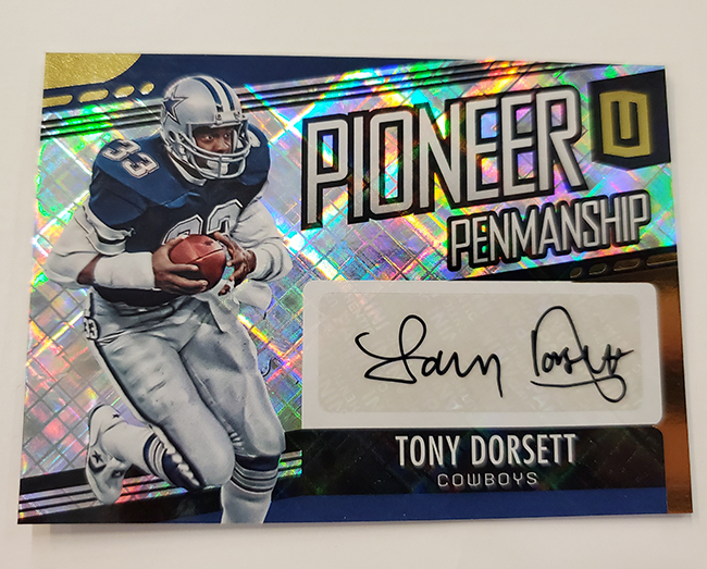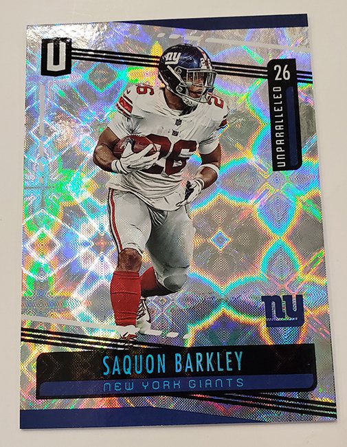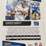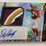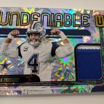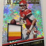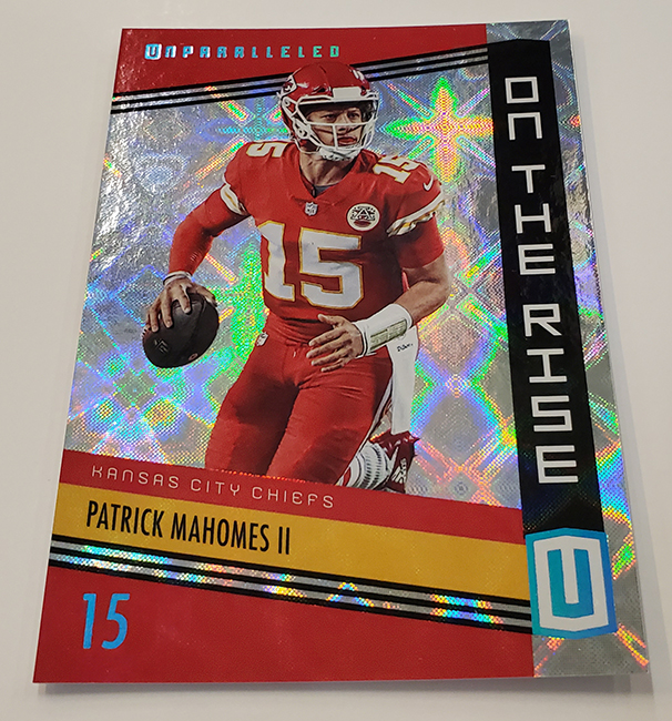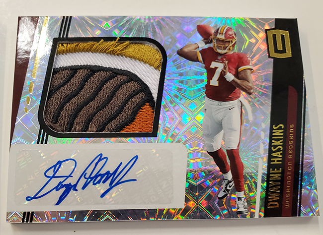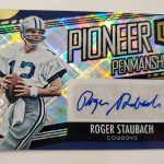 The Basics: Atop the hits, every box will include at least seven serial-numbered parallel cards just like last year. This year, the base set will have 300 cards -- 200 veterans (at least 60 of those being RCs, too) and 100 new rookies -- with the base set's parallels including Flight, Groove, Astral (/200), Infinite (/150), Whirl (/100), Impact (/75), Hyper (/25), Fireworks (/5), Burst (1/1) and Galactic (one per case). The rookies will have the same rainbow of parallels but their Galactics will be found in every other case. Standard RCs will be found two per pack. Rookie Focus cards reinforce this one's focus on newcomers with that insert set having Groove, Whirl (/100), Impact (/75), Hyper (/25) and 1/1 Burst versions. ... Rookie Jersey autos will have Astral (/150 max), Impact (/75), Hyper (/25), Fireworks (/5) and 1/1 Burst versions as well as NFL Shield, Tag and NFL Shield Logo versions that all will be 1/1s. ... Pioneer Penmanship autos will be back once again with a focus on past greats -- guys from the 1950s to 1990s -- with all limited to no more than 99 copies. ...Rookie Signatures will have fewer parallels -- Hyper (/25), Fireworks (/5) and 1/1 Burst -- while Undeniable Impact memorabilia cards will spotlight just 30 players with Astral, Impact, Hyper, Fireworks and Burst versions. ... Inserts will include High Flyers and Star Factors diecuts that are one per case as well as The Thrill of Victory, Spirit of the Game, Rookie Revue and On the Rise. Packs carry a suggested retail price of $12 ($96 per box).