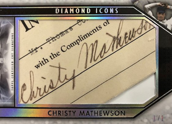 The Basics: All cards will be limited to no more than 25 copies with a number of parallels and all autographs will be on-card. On the autograph front there will standard ink (/25 or less) each with Purple (/10), Red (/5) and 1/1 Gold parallels just like last year, while there will be red-ink autos (/25 or less) with Purple (/10), Red (/5) and 1/1 Gold versions, too. There also will be Diamond Icons autos (/25) with the same parallel rainbow as well as Silver (/25) with those parallels. ... The cut auto lineup will include cards limited to just four copies and with a Gold 1/1 parallel. There also will be as many as 30 Immortal Cut Signatures cards just like last year. ... Auto Relics will include Jumbo Patches (/25 max) with the Purple-Red-Gold rainbow, single-player auto Relics (/10) with Red and Gold versions, single-player dual team auto Relics (/10), single-player dual auto Relics, dual-player dual auto Relics (/10). These will have Red (/5) and 1/1 Gold parallels. Rounding it out will be new autographed diamond relics (/10) that will only have 1/1 Gold parallels. ... On the Relic front there will be single-player cards (/10), dual books (/10), Diamond Relics (yes, your real diamonds per card), Preeminent Piece Cleat Relics (/10) with 1/1 Spike Relic parallels and MLB logo patches that are 1/1 cards. Relics will have Red (/5) and 1/1 Gold parallels. ... No preliminary checklist was released and, based on factory cost, these boxes definitely will once again be north of the $1,000 mark.