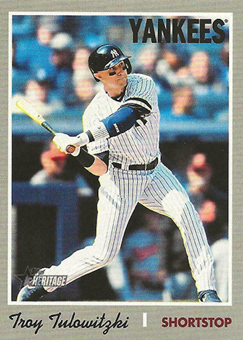 The standard insert lineup should be familiar compared to previous years with Rookie Performers, Now and Then, Combo Cards, Award Winners, The Hammer's Greatest Hits (hobby-only) and 1970 Topps Scratch-offs. Finishing things off here will be three types of box-toppers -- Supers, Posters (/70) and stamped buybacks.