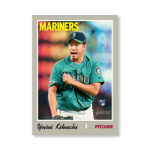 Real One Autographs return with on-card ink and Red (/70 max) parallels -- and Kikuchi teased among them -- along with duals (/TBD). New for this one will be The Hammer's Greatest Hits autos (/5) for Hank Aaron only found in hobby boxes. On the auto-Relic front, there will be Clubhouse Collection Auto Relics (/25) with 1/1 Patch parallels along with duals (/10 max) with a 1/1 Patch versions. There also will be baseball and celeb cut autograph sets. For standard Relics, there are Clubhouse Collection cards with Gold (/99) and 1/1 Patch parallels just like in the first series and there also will be dual (/70), triple (/25) and quad (/10) cards all also with 1/1 Patch versions.