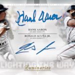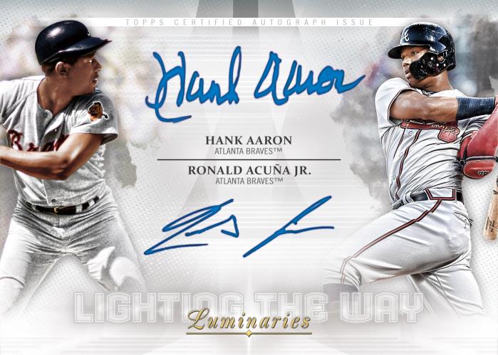 The Basics: Among the standard autos will be Home Run Kings (/15) with Red (/10), Blue (/5) and 1/1 Black parallels just like last year. There once again will be 50 (again, not a typo) autos on one 1/1 card -- Home Run Kings Ultimate Book -- while the Home Run Hitters Ultra Book (also a 1/1) will have 10 top sluggers from the past and present. Also in play will be Hit Kings and Masters of the Mound with the same rainbow, along with other books -- Hit Kings Ultra Book (10 autos), Hit Kings Ultimate book (40 autos), Masters of the Mound Ultra (10 autos) and The Greatest Ultra Book (30 autos). New this year will be Lighting The Way dual autos (/5 max) that pair players with common ties from the past and present. ... Auto Relics will include Home Run Kings (/15) with Blue (/10) and 1/1 Black parallels (same volume) and Auto Patches (/5) and a 1/1 Black, and then 1/1 Home Run Kings Auto Patch Dual and Triple Books along with Letters Auto Books. Also to be found will be Hit Kings Auto Relics (/15) with Blue and Black versions along with the two patch versions and dual books. Lighting The Way Dual Auto Relics also will exist (/5) with Masters of the Mound getting the same rundowns. ... The cut auto lineup will include cut autos, cut auto Relics, cut auto bat knob books and dual-auto/cut books. Each of those will be 1/1 cards.