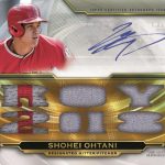 On the Auto-Relic front, there will be Auto Relic Combos with three players with Amethyst (/27), Emerald (/18), Gold (/9), Sapphire (/3) and 1/1 Ruby as well as printing plates. Standard Auto Relics will be limited to 18 copies with Gold (/9), Sapphire (/3) and 1/1 Ruby, 1/1 Wood and plates. There also will be Jumbo Plus books that have one jumbo patch and two patch pieces along with an auto (/3) wth 1/1 Ruby parallels as well as Letter Plus (same but with a letter). Joining them will be 1/1 Cut Above and Dual Cut Above cards along with auto Deca Relic books once again with one player getting 10 swatches and ink on cards limited to 10 copies. These will have Gold (/5) and 1/1 Ruby parallels just like last year. The same will apply with the 10-player cards. Windows into Greatness Auto Relic Books also will be back with one player on a three-panel card with base versions limited to five and then Gold (/3) and 1/1 Ruby versions. New this year will be 150 Years of Baseball triple-Relic autos (/9) with Sapphire (/3) and 1/1 Ruby parallels as well as Triple Threads Pieces of the Game auto Relics with three different Relic types per card along with ink (/18) with Gold (/9), Sapphire (/3) and 1/1 Ruby versions.