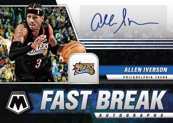 Update: There will be 18-pack Fast Break boxes for this one (20 boxes per case) with one autograph in every box along with one Silver, 10 Fast Break Prizms, five inserts and one rookie variation card to be found. Parallels in this format will include Silver, Blue, Purple, Pink, Gold and 1/1 Black cards. There also will be National Pride, All-Time Greats and Finals MVPs subsets in the set not previously shown with Fast Break parallels to be found. Autographs in this format will be exclusive to this one with Gold and Black versions in play. ... Boxes will carry a suggested retail price of $175.