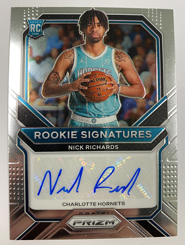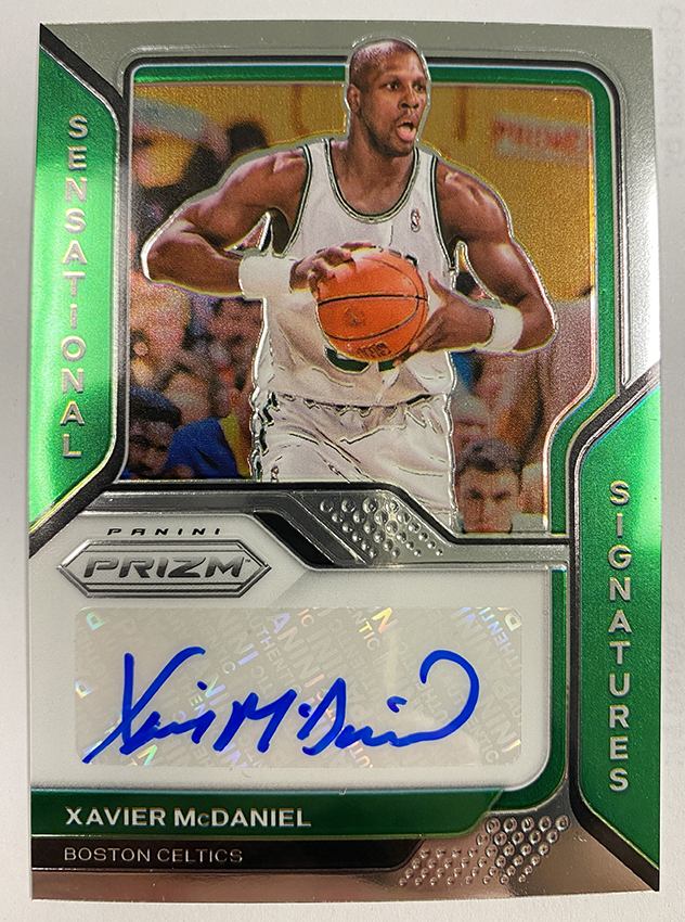 Update: Choice boxes will include one autograph, two Silver Prizms, three Blue-Yellow-Green Prizms and then two other Prizm parallels per box -- that's it -- with 20 boxes per case. They will include Tiger Stripe, Green (/8), Nebula (above) and other parallel types only found in Choice. Sensational Signatures cards will be found as Green cards here while Signatures and Rookie Signatures will have Red and Green among their colors. (Full rainbows were not disclosed for this one.)