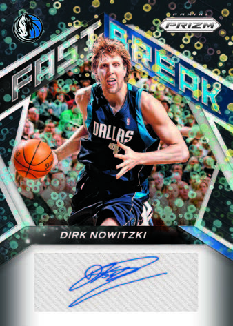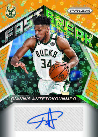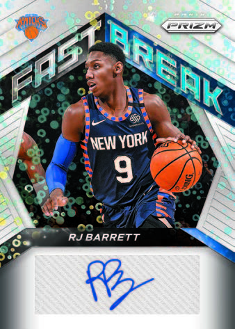 Update: Fast Break boxes for this one will include one autograph, one rookie variation, 12 Prizm parallels and six inserts. Boxes will include 18 five-card packs and there will be 20 boxes per case. Among the Fast Break parallel colors will be Blue, Red, Purple, Pink, Bronze and Neon Green. On the insert front, there will be Downtown Bound, Fireworks, Widescreen, Prizm Flashback and Fearless cards to chase, while Fast Break autographs will only be found here and among their parallels will be Gold and Black parallels (rainbows not fully revealed for any sets here).