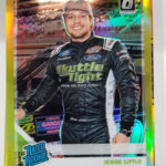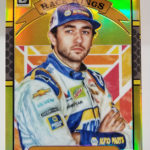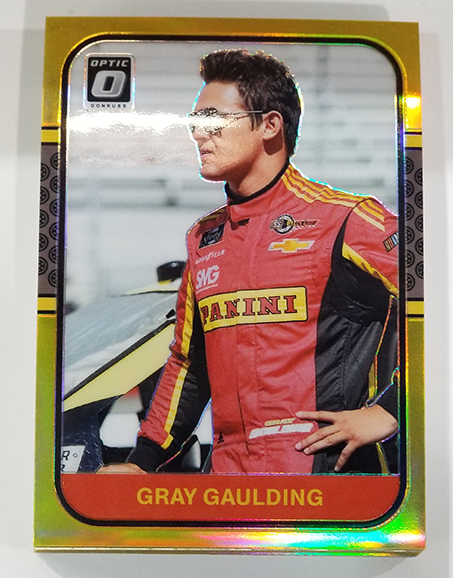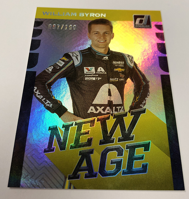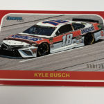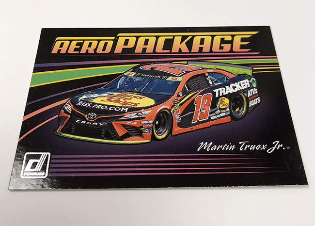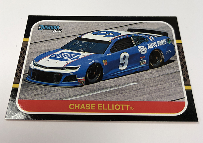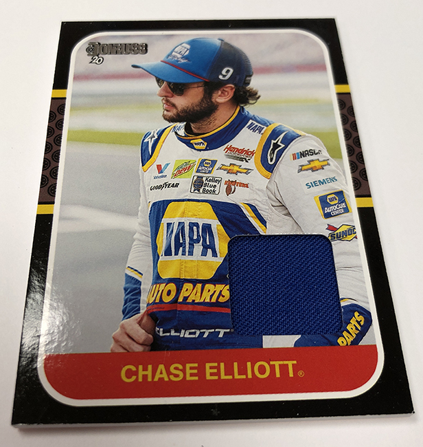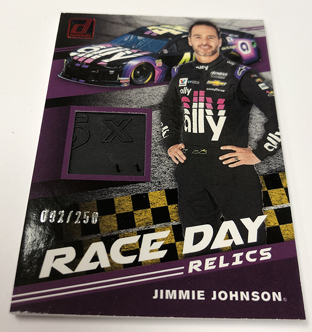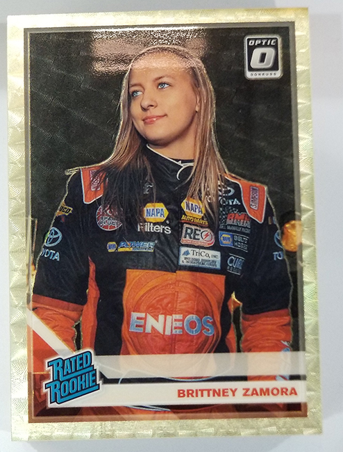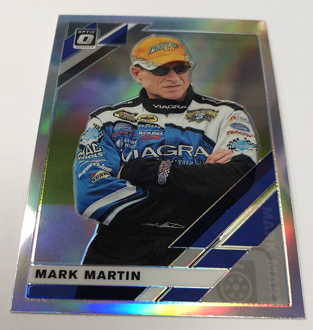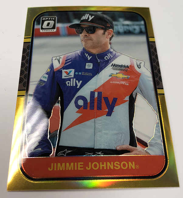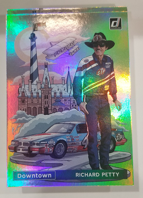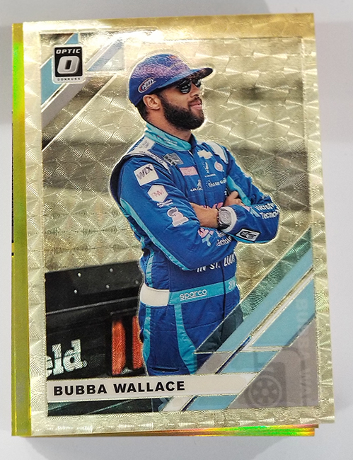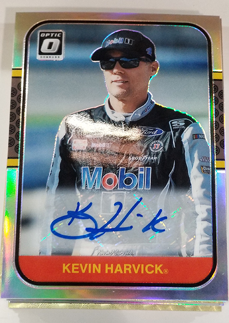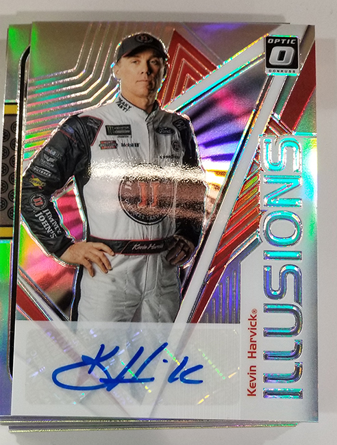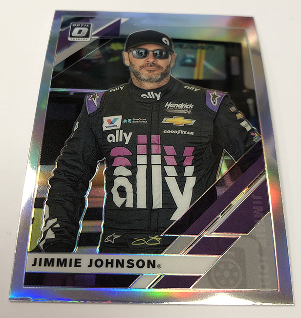 The Basics: Each hobby box will include 24 Optic insert cards -- double last year's total -- as well as 24 parallel cards and 24 insert cards atop the base cards and hits. ... There will be new parallels in the mix, including Red, Blue, Black Numbers, Green, Purple, Pink and Black Trophy Club for all 200 cards in the base set. It will include drivers, cars, Rated Rookies, Retro 1987, Race Kings and Retro 1987 Throwback Cars. The full parallel lineup will include nine parallels -- Silver parallels and printing plates are the others.... Meanwhile, new inserts and memorabilia will include Timeless Treasures Signatures and TT Materials Signatures, Downtown, Retro Series, Elite Series, Dominators, Action Packed, Aero Package and Retro 1987 Relics. ... Signature Series cards will be found for past and present drivers with three parallels this time -- Red, Gold and Black. Those same colors will apply for Timeless Treasures foil stamping as well as for the Race Day Relics cards that will have several possible swatches. Tires, sheet metal and firesuits will all be in play for that one. ... Dominators inserts will be hobby-only finds with three parallels -- Holographic, Cracked Ice and Xplosion. Also in play will be Downtown -- its NASCAR debut -- while Optic inserts will include base Optic, Optic Race Kings, Optic Rated Rookies, Optic Illusion and Optic Retro cards. There also will be Holo, Gold, Gold Vinyl and autograph parallels. ... Packs will once again carry a suggested retail price of $2.99.