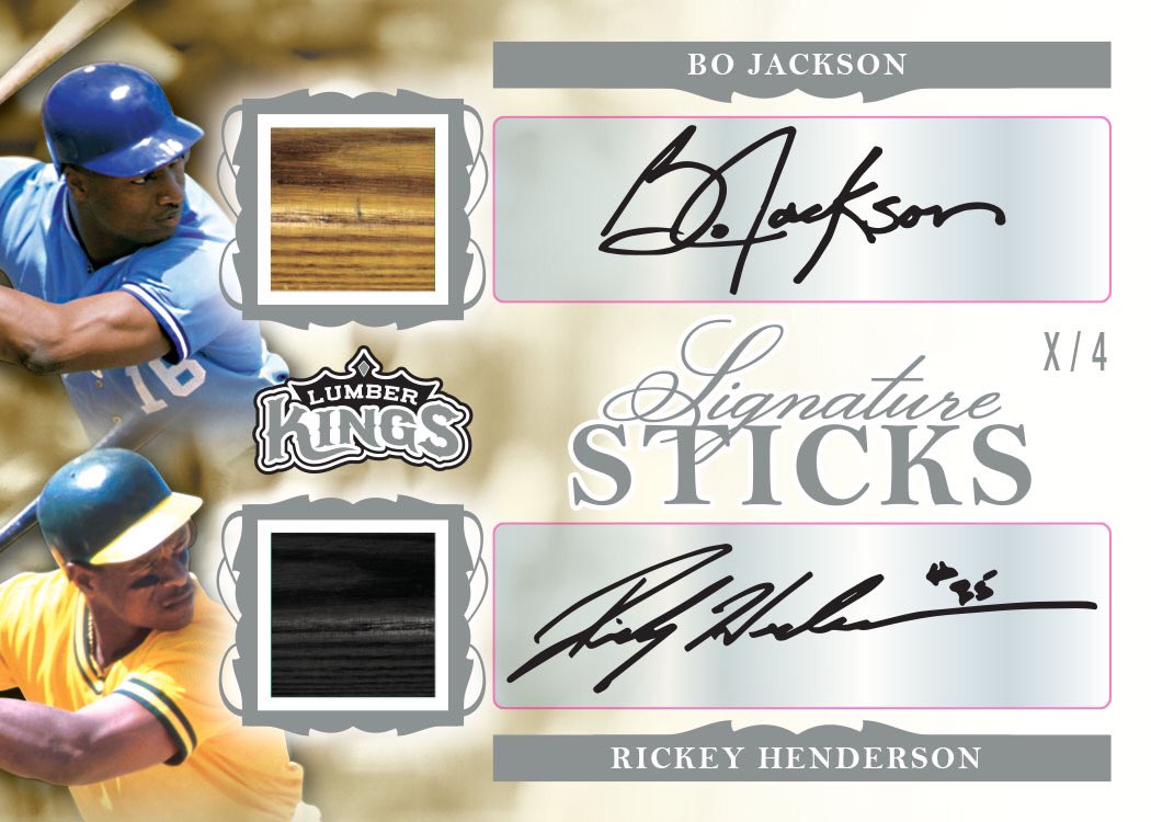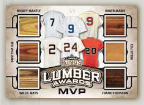 The Basics: There are 16 different sets teased for this one with autographs and big memorabilia among them. They include Game-used Lumber, Signature Sticks, Dinger Kings, 500 Home Run Club, Bat Barrell, Bat Knob, Off The End Of The Bat, Bat Rack Three, Bat Rack Four, Enshrined Eight, Lumber Awards, W.A.R. Room, Legendary Lineup, Home Run Challenge, Rivals and Signature Sticks Two. You can see a sampling of them in the gallery below as well as see some of the notable names who will be included -- Babe Ruth, Roger Maris, Jim Thome, Ichiro Suzuki, Ken Griffey Jr., Bo Jackson, Mickey Mantle and more.