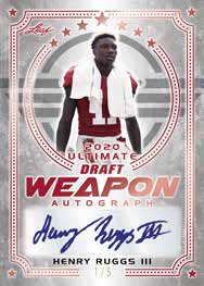 The Basics: There will be nothing but autographs to be found in this one from a number of sets each with parallels. There will be Draft Weapon, Future Stars and 1991 Gold cards in the mix. Some of the signers will include Henry Ruggs, Jerry Jeudy, Kristian Fulton, Zack Moss, Eno Benjamin and Jonathan Taylor for starters. ... No other details were released.