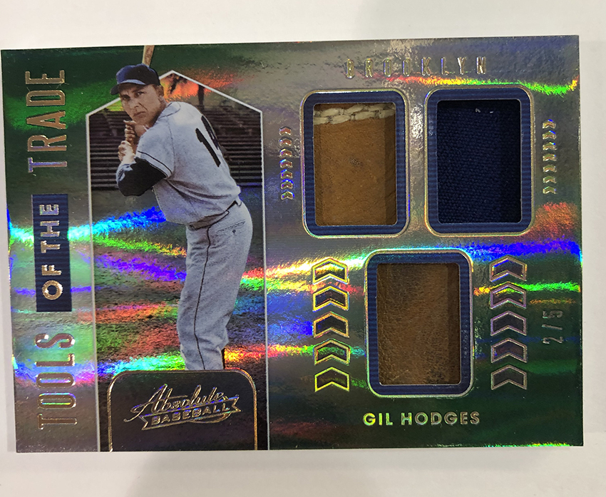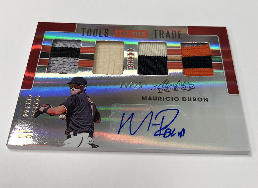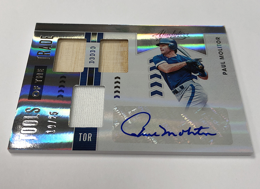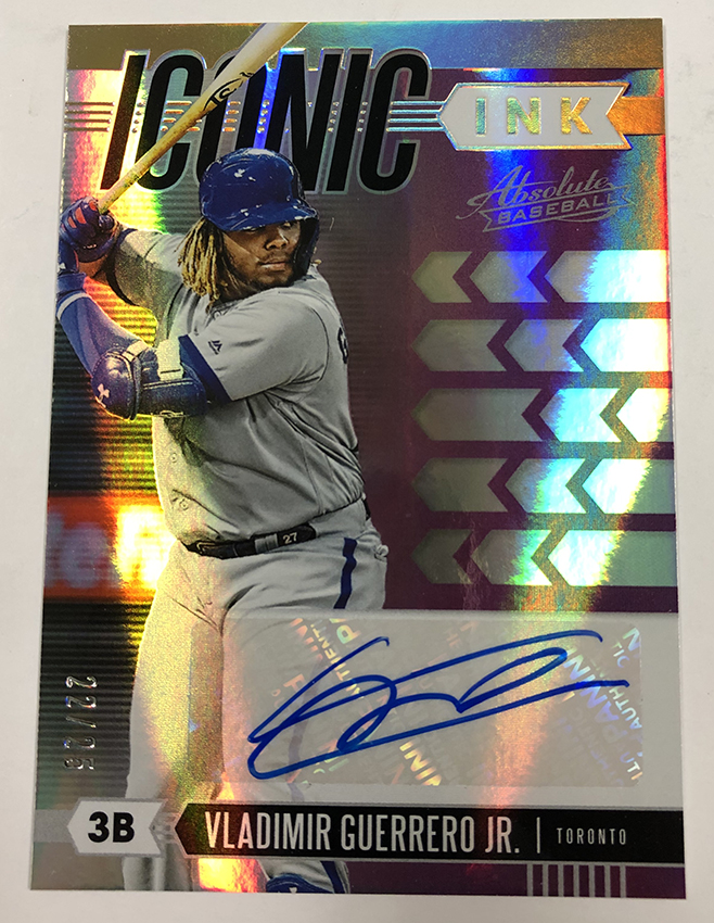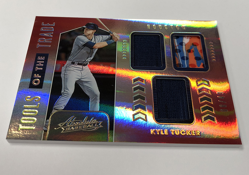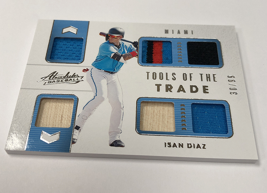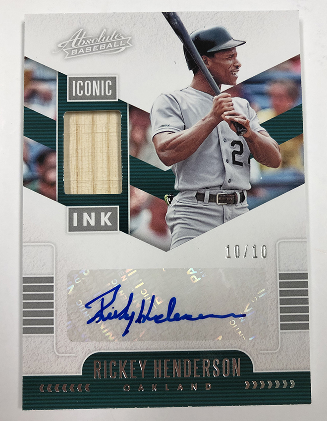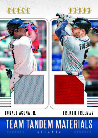 The Basics: There will be four inserts and two serial-numbered parallel cards atop the hits in every box when this one arrives. ... Among the autograph possibilities will be Iconic Ink cards as well as dual- and triple-auto cards with that name. That will include a mix of past and present stars as well as prospects. There also will be Rookie Baseball Material Signatures with rookie autos on baseball leather pieces. ... On the memorabilia side, there will be Tools of the Trade cards once again with ink and mem -- at least two pieces but as many as six per card. There also will be Rookie Materials and Team Tandems cards -- both only in hobby packs. ... Among standard inserts will be One-Two Punch (10 duos), Rookie Round Up (25 rookies) and Absolute Legends (20 stars). ... Base parallels will include hobby-only Silver (/199), Spectrum Red (/99), Spectrum Gold (/10) and 1/1 Spectrum Black as well as printing plates. ... Boxes carry a suggested retail price of $200 ($100 per pack).