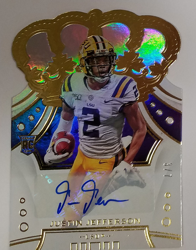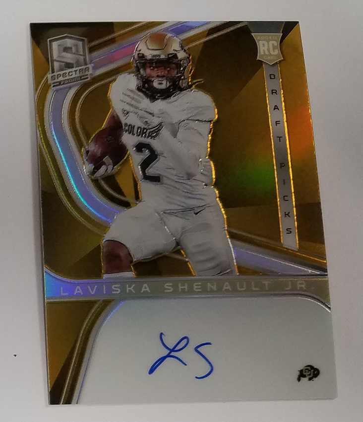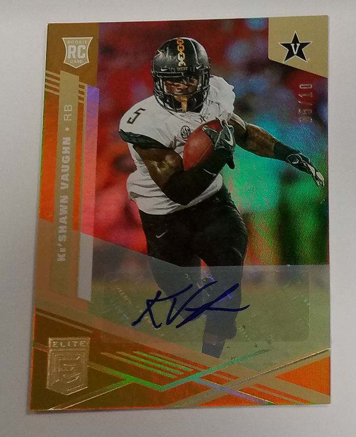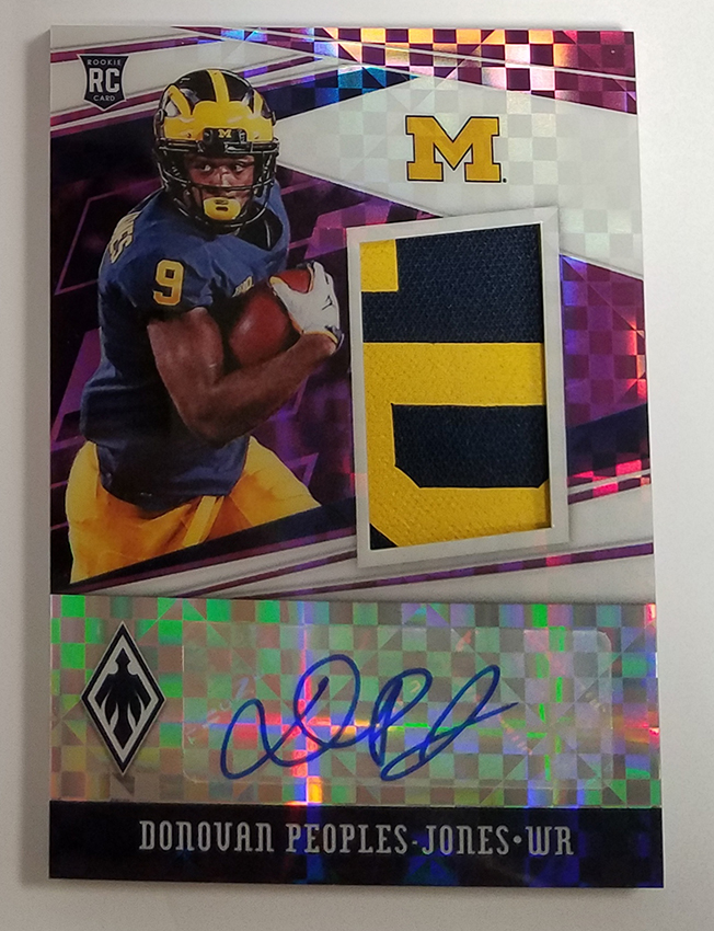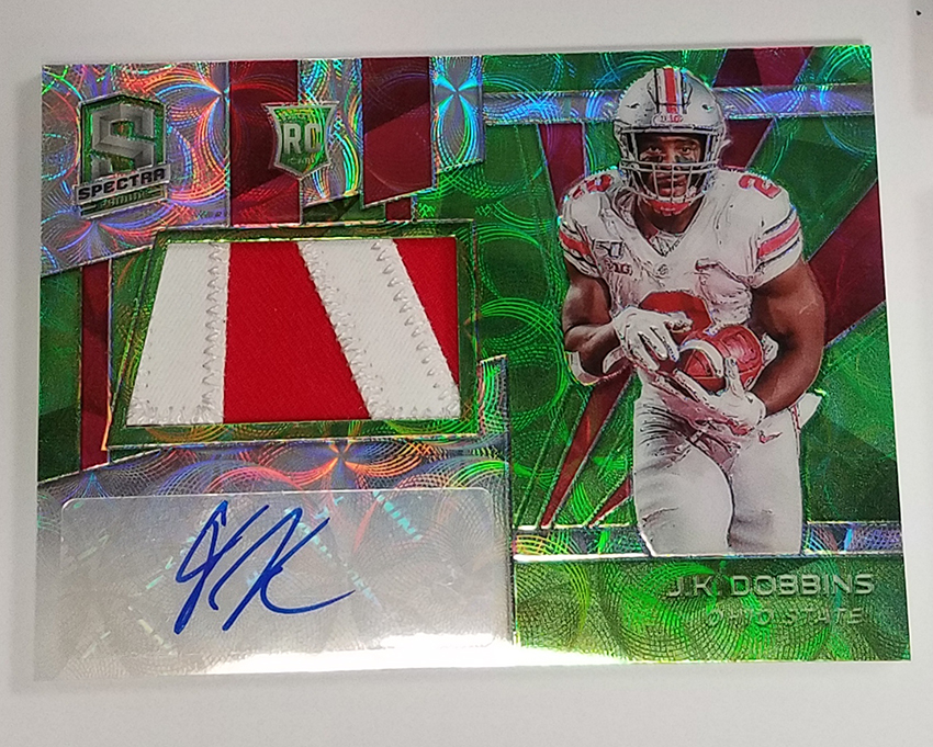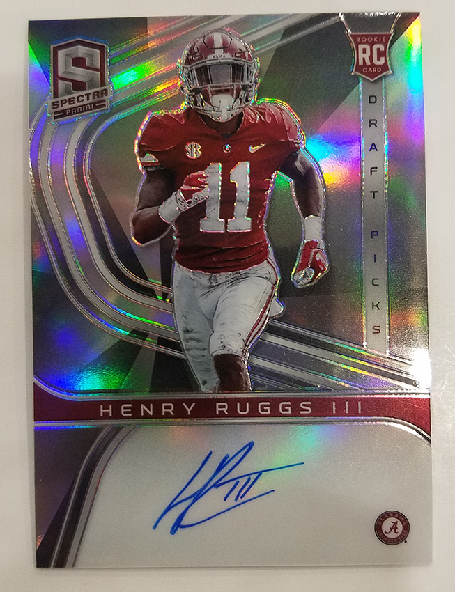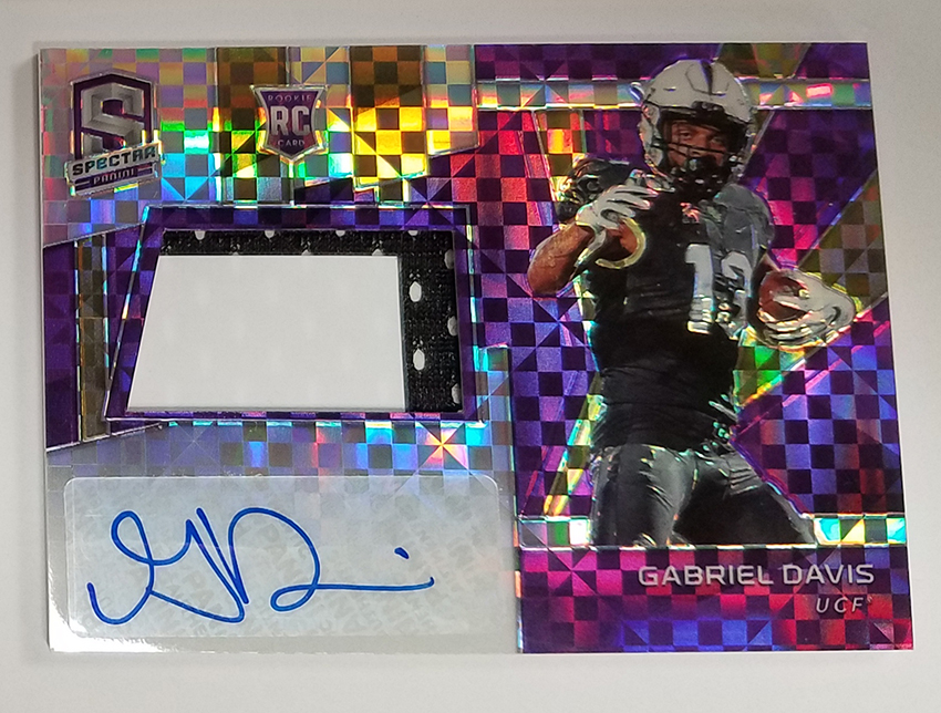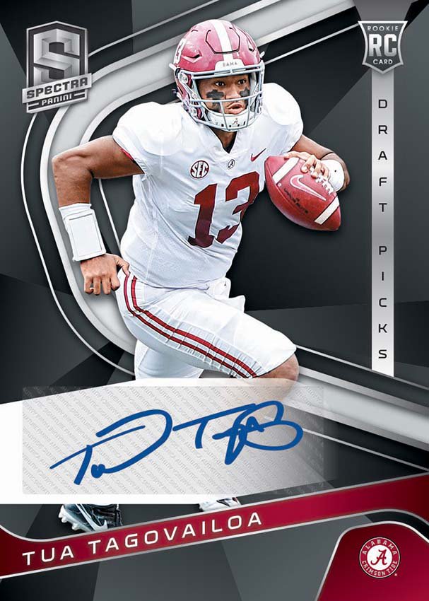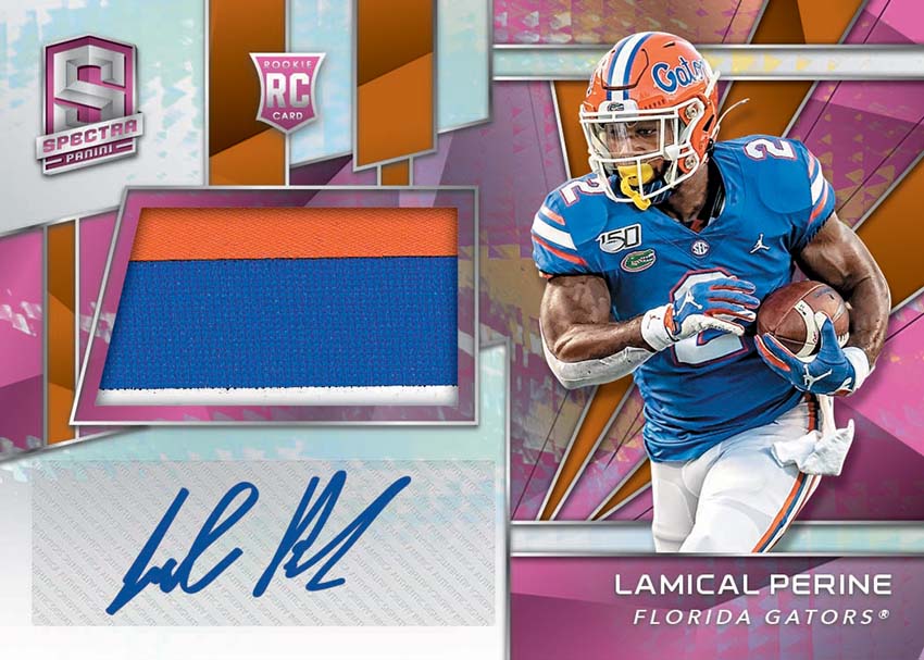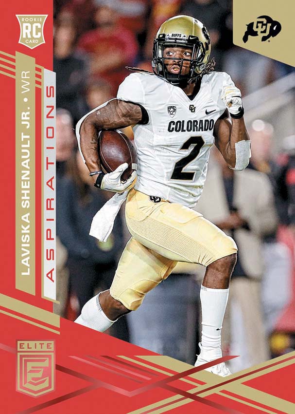 The Basics: Some of the inclusions here will be printed on Optichrome stock and other styles also will be used. You can find Select, Elite, Donruss, Optic, Spectra, Absolute Football, Chronicles, Crown Royale and more in this one with autographs in 21 brands and on-card ink for the Select, Spectra and Optic sets. ... There also will be memorabilia cards for Chronicles Alma Mater Materials, Crown Royale Silhouettes and Spectra patch autos. There will be three mem-only sets and seven auto-mem sets in this release. ... A one-per-case insert will be Downtown Collegiate Football cards. ... Boxes will carry a suggested retail price of $120 ($20 per pack).