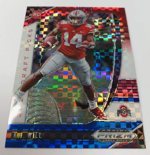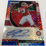 What's buzz-worthy: Prizm opens the 2020 football card season with potential new draft picks and recent college stars in their school colors all in a hit-per-pack format.