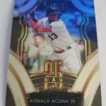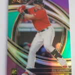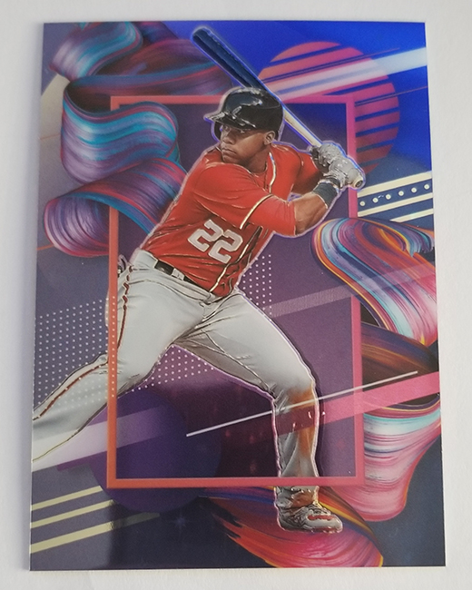 The Basics: There will be five cards per pack here with a total of nine parallels per box atop the hits and a mix of prospects, rookies and veteran players all on Optichrome stock. The tiers for the main set will include Base, Premier and Diamond Level cards. ... Hits this time will include Rookie Signatures and Rookie Jersey Autographs as well as Launch Angle autos, X-Factor Material Signatures, Signatures (prospects and veterans) and Signature Materials. ... Among the parallel possibilites are Zebra (hobby only), Holo, Gold Vinyl, Gold, Tri-color and Cracked Ice -- though a full lineup was not noted. ... A base set size also was not noted but it will be at least 250 cards. ... The only insert set noted for this one was Sparks, which will be cards found for 10 players. ... Boxes carry a suggested retail price of $120 ($10 per pack).