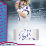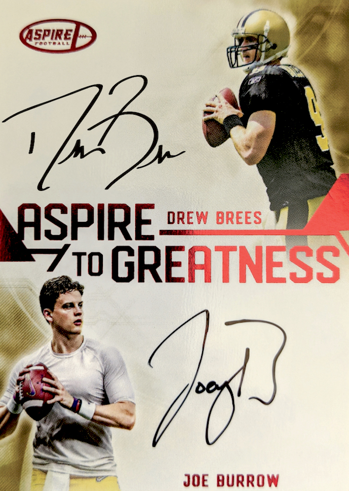 The Basics: More than 70 players appear on the checklist (below) with most of them being players who were drafted and will have their pro teams noted. There will be a first-round QB in every box as well as a first-round WR and a first-round defender, too, with at least a fourth first-rounder (random position) also included. All cards have parallels based on the color of the foil stamping with some as rare as 1/1 versions. There also will be Drew Brees/Joe Burrow dual autos to be found with Hot Boxes also in the mix -- no details were revealed there. ... Boxes will not include packs but rather include the autographs inside two 12-card slider boxes.
