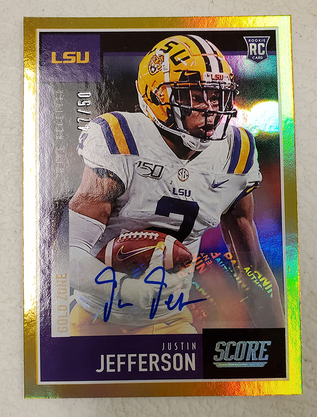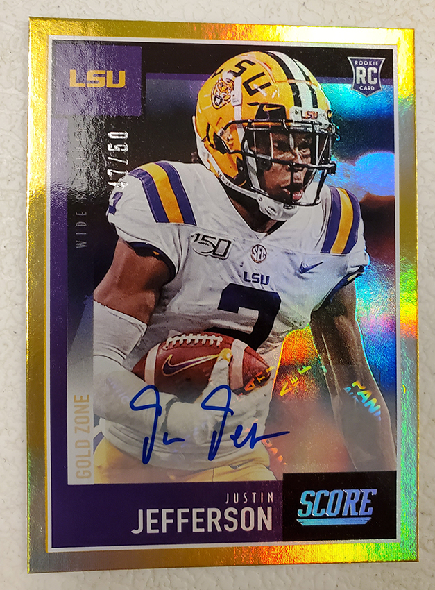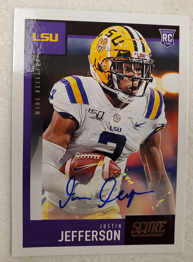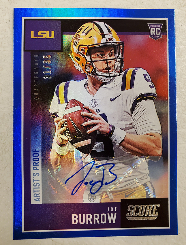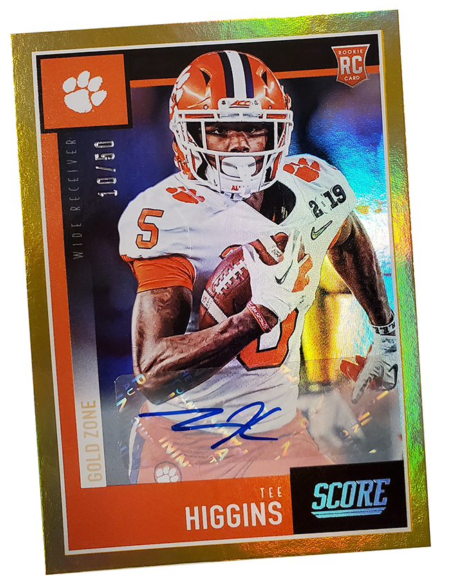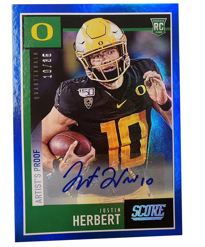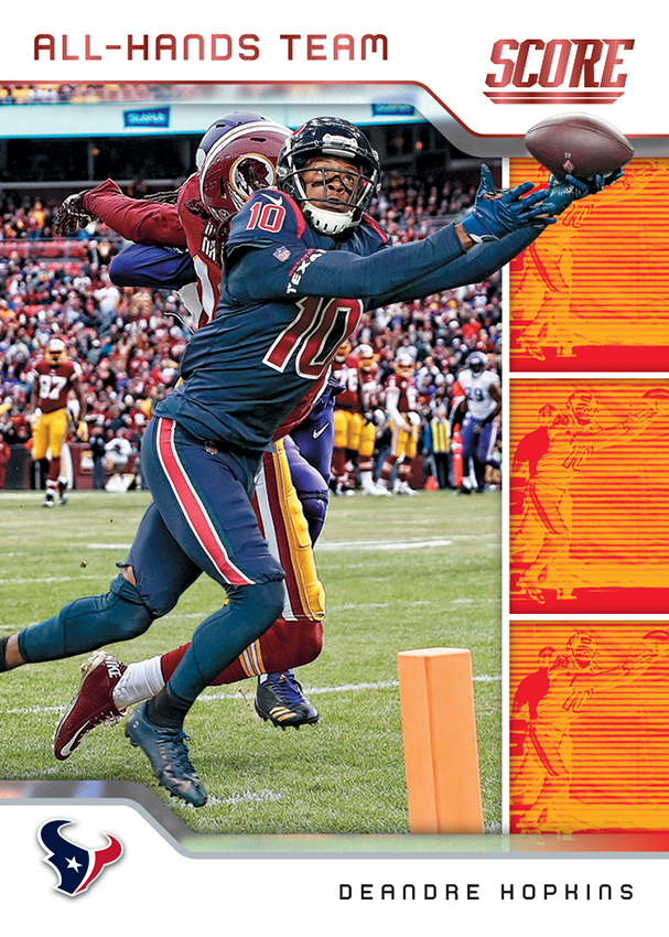 The Basics: There will be 40-card packs once again for this one with 90 Rookie Cards, 10 parallels and 36 inserts in a typical box. There will be 110 Rookie Cards in this edition -- the mocks here show last year's rookies -- with parallels that will include eight versions per card for both veterans and RCs. You can see a full breakdown in the gallery below. ... Autographs will be found for veterans as well as rookies, while one of the hobby-only inclusions will be Intergalactic inserts found one per case. Other inserts will include Breakthrough, All-Hands Team and Under The Radar. Also in play will be a Tom Brady Tribute with 20 years of his Score cards and ink involved. ... All will have parallels and no other inclusions were announced at this time. ... Packs will once again carry a suggested retail price of $10 ($100 per box).