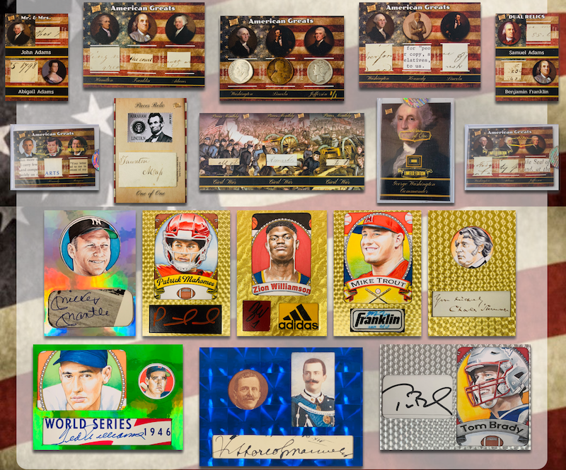 The Basics: Vintage relics, game-used memorabilia, cut autographs, sketch card art bars and more are possible here with cuts from presidential documents, coin relics, memorabilia relics and more possible here. Among the memorabilia cards here? news relics, tickets, buttons, pennants, presidential invitations and more. Among The Bar creations will be 5-by-7 cards with art and game-used pieces, art and autos, art and auto-mem and more with subjects from sports, music, Hollywood and more. There also will be Hot Cases in the mix though those details (what makes it hot) were not specified. ... These boxes carry a suggested retail price of $39.95.