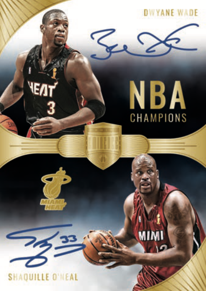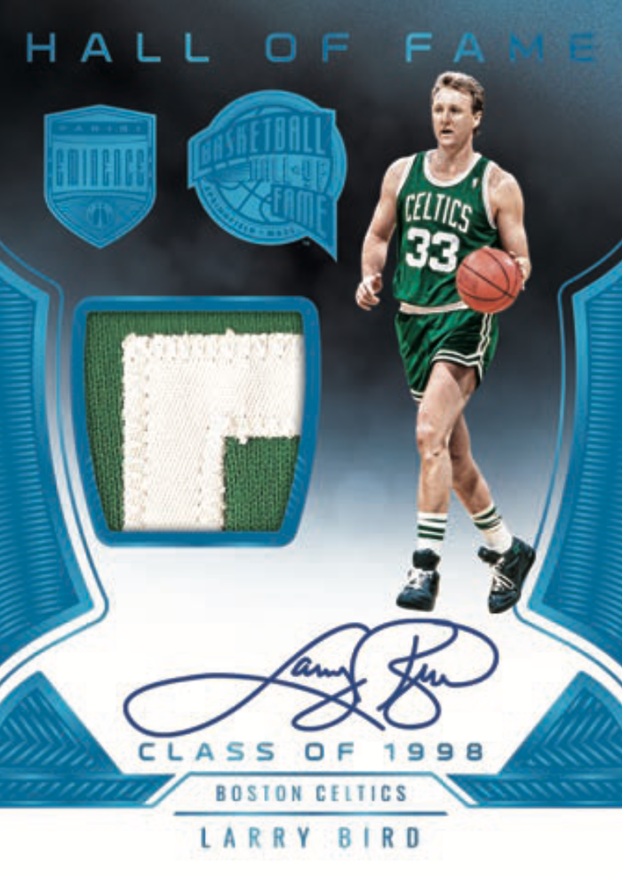 The Basics: Patch Autos lead the way here with Gold, Platinum (1/1) and Green parallels among those teased for this one, which will have patches and on-card ink throughout. (Parallels were not detailed in advance of this release.) Joining them will be Hall of Fame patch autos, Larry O'Brien Trophy Signatures cards that have a platinum, gold or silver bar embedded into the cards as well as rookie patch autos, Gilded Graphs and jumbo patch autos. There also will be NBA Champions dual-auto cards with some legends paired once again as well as 75th Anniversary Diamond sigs and Curtain Call Diamond Signatures that add ink to gems. ... These boxes once again carry a suggested retail price of $15,000.