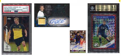 The Basics: There will be PSA and BGS slabs in this one with at least one slabbed card per box here. There will be fewer than 300 cases made for this release. Among the teased names are Erling Haaland, Kylian Mbappe, Jadon Sancho, Jude Bellingham, Lionel Messi, Cristiano Ronaldo, Pele, Ansu Fati and Christian Pulisic among others -- "only top names" are planned for this one.