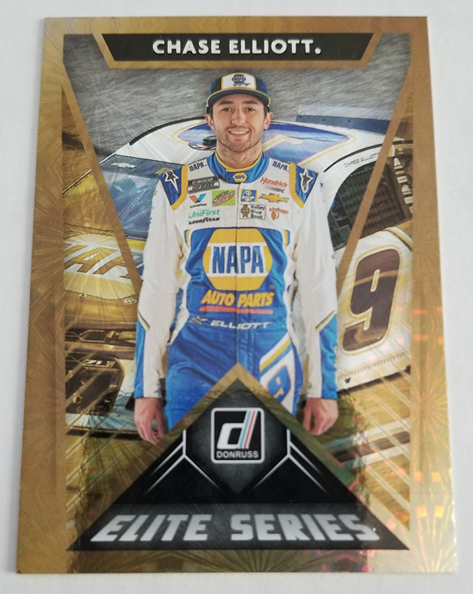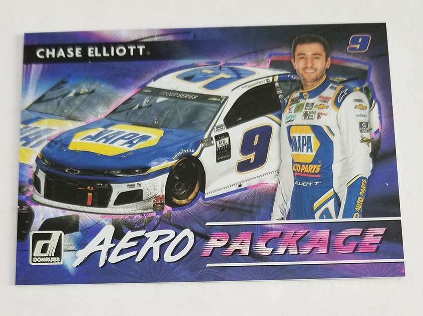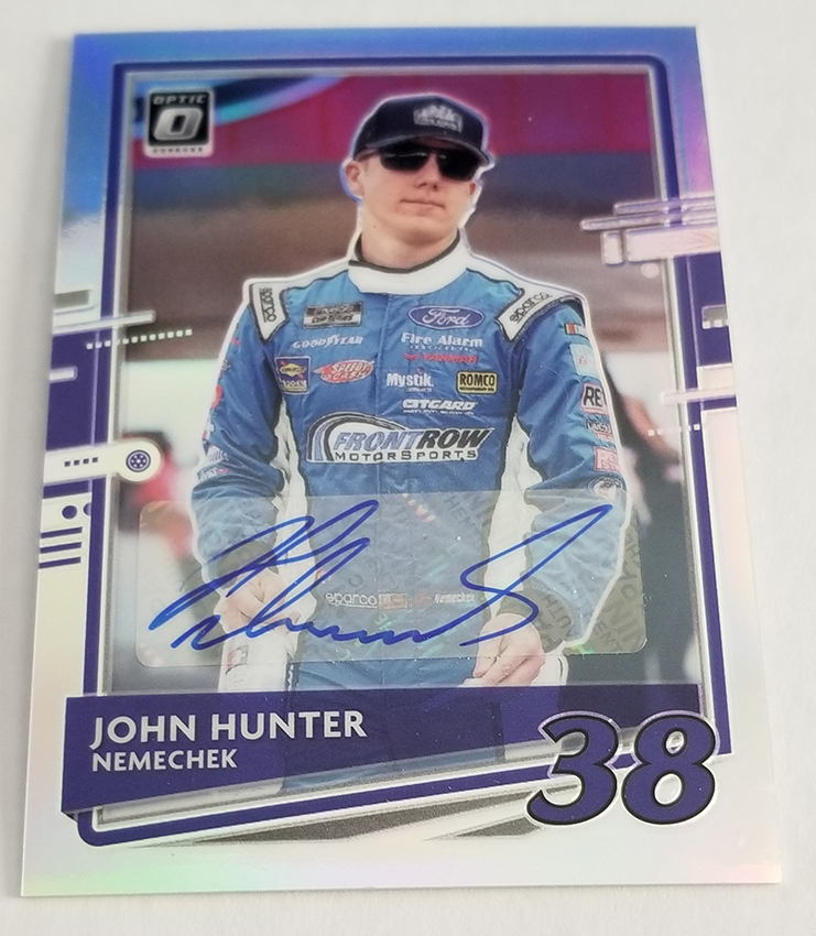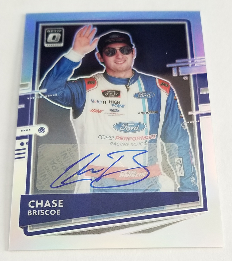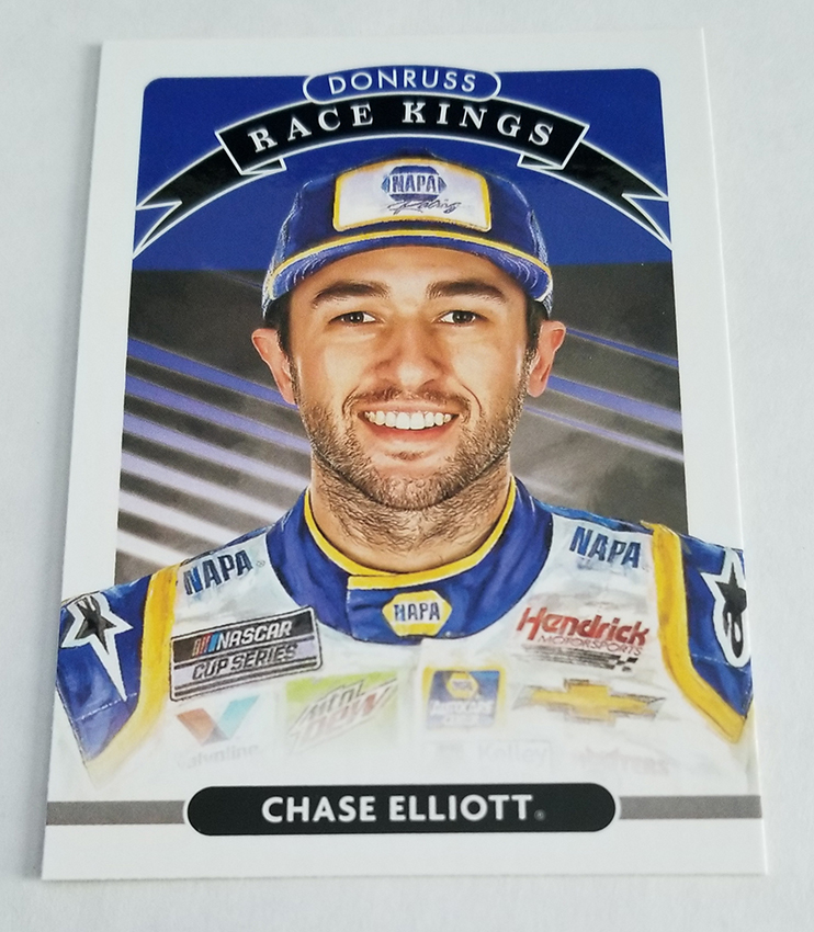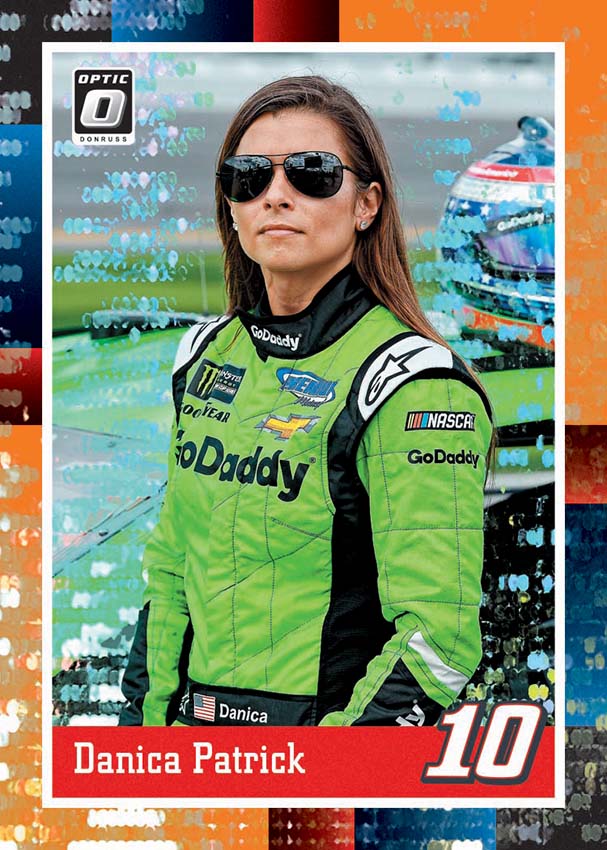 The Basics: Each hobby box will include 24 Optic insert cards as well as 24 Silver parallel cards and 24 insert cards as well as nine serial-numbered parallels atop the base cards and hits. ... Among the hits will be Signature Series (three parallels -- Red, Holo Gold and Holo Black), Race Day Relics (same parallels), Timeless Treasures Materials Signatures (same parallels). ...The base set for this one will include 200 cards with subsets that will include the typical Rated Rookies, car cards, Retro cards (1988 this year) and Race Kings. There will be nine parallels per card -- Silver, Red, Navy Blue, Green, Purple, Pink, Fifth Anniversary, Black Trophy Club and 1/1 printing plates. ... Among the inserts will be Optic versions of the base set, Contenders, Retro Series, Elite Series, Dominators, Action Packed, Aero Package, Classics, Downtown, Blank Slate, Water Colors and Sketchworks. Those last four are rarer pulls compared to others. ... Packs will once again carry a suggested retail price of $2.99.