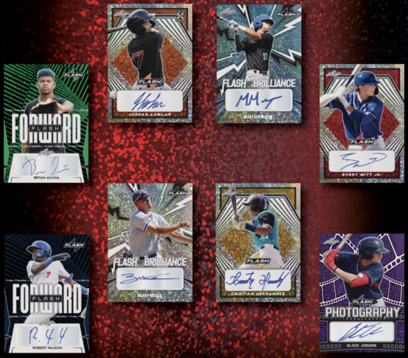 The Basics: All cards will be printed with "flash" technology stock with known subsets/inserts so far that will include Flash of Brilliance, Flash Forward and Flash Photography. There will be a number of parallels -- Gold, Orange, Red, Purple, Blue and Green for starters -- though no details were released. Among the names teased for this one are Ohtani, Blaze Jordan, Cristian Hernandez, Bryan Acuña, Robert Puason, Bobby Witt Jr., and Jordan Lawlar to name a few.