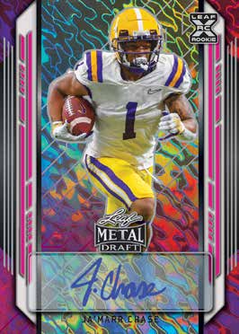 What's buzz-worthy: Leaf Metal Draft returns to the gridiron with two box options once again and with some of the biggest names in this year's NFL Draft already signed up and ready to go in this all-autograph release.