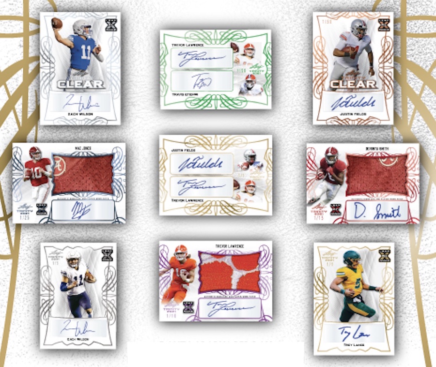 The Basics: These will include nothing but hits with jumbo patch autos, autos, dual autos (a new addition), and clear autos. There will be parallels in this one with a few hues seen in above but no details were revealed. Among the teased names here are Trey Lance, Trevor Lawrence, Devonta Smith, Mac Jones, Justin Fields and Zach Wilson.