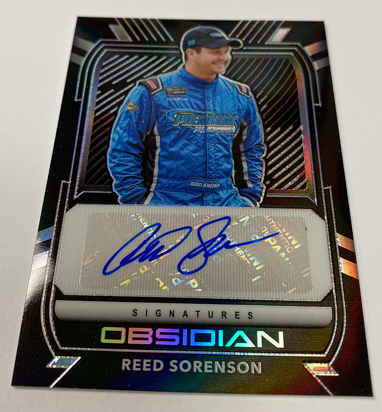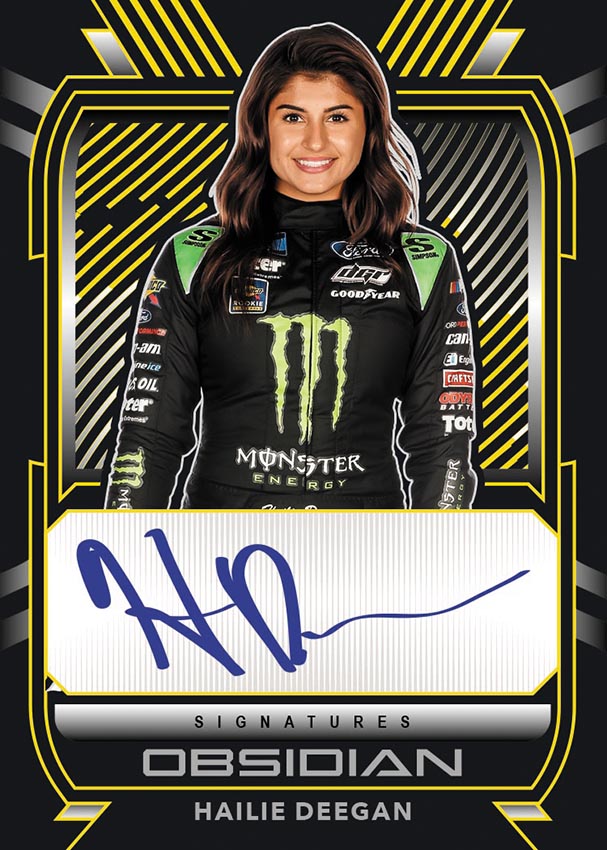 The Basics: Every hobby box will include four hits (not one per pack) along with a pair of Spectra cards, which will be in the packs where there's no hit. Among the brands coming in this one will be Obsidian, Gold Standard and Select for starters with hits arriving in Obsidian, Cornerstones, Contenders Optic, Chronicles, Black, Status, Rookie Materials and Prime for starters among those teased. Chronicles hits will use sheet metal, firesuits, gloves and tires with five parallels (/49 max), while Prime jumbos will showcase firesuits with 21 parallels limited to no more than four copies for all 30 cards. ... Basic cards will include a mix of standard, plastic and Optichrome stock. Each set will have five parallels limited to no more than 199 copies. ... Packs once again carry a suggested retail price of $20.