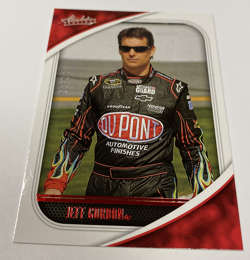 Update: Gordon's cards in this one are his first from Panini and he offered these thoughts on returning to cardboard. “I’ve been impressed with what Panini America has done not just with the NASCAR license, but with the trading card market as a whole,” Gordon said in a prepared statement. “Panini America is innovative and creative, and I look forward to working closely with them to create new trading cards that I know my fans are going to love.”