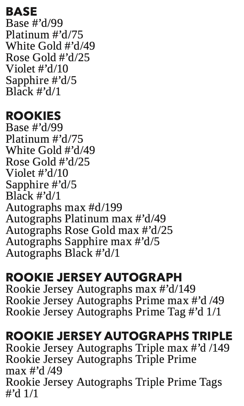Box basics: Five autos or memorabilia cards per seven-card box (12 boxes per case)