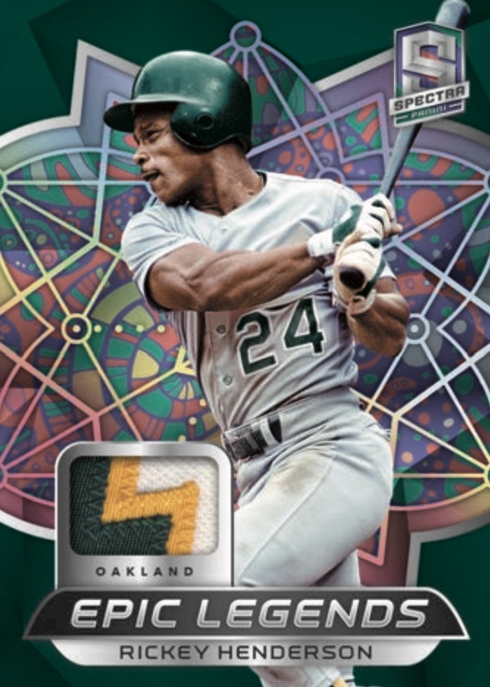 The Basics: Collectors will find 16 cards per box here with the non-hits half including a mix of base cards and inserts, though details on that base set were not fully disclosed nor were parallel breakdowns. What is known? The rookies portion of the checklist will include 82 cards alone. Inserts will include "ultra rare" Deep Space and Solar Eclipse cards though nothing else was noted. ... Rookie jersey autos will include on-card sigs and prime parallel cards while Spectra Signatures also will have on-card ink. USA Signatures cards will have sticker autos as will Fireworks Fabric autos that will join ink with memorabilia pieces. Epic Legends memorabilia cards will be found for 20 Hall of Famers and legends in the game. ... Among the teased parallel colors and textures here are Gold, Neon Green, Nebula, Meta, Neon Pink, Splatter and Psychedelic. ... Boxes will carry a suggested retail price of $300.