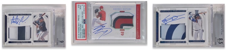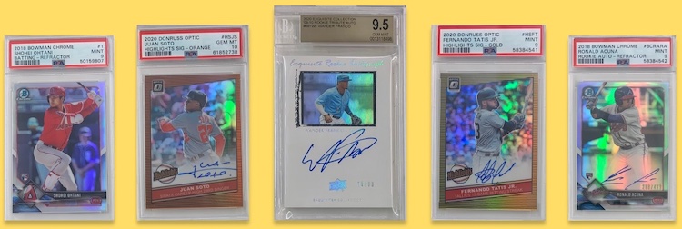 The Basics: All boxes will include a slabbed card and some also will have raw cards as extra bonuses in this release. Collectors can expect to find top rookies, prospects, stars, Hall of Famers and more. There will be 1/1s, patches, autos, RPAs, BGS Black and PSA 10 cards, inserts and more in the mix with a suggested retail price of $54.99 a box. You can see a sampling of the possibilities in the gallery below.