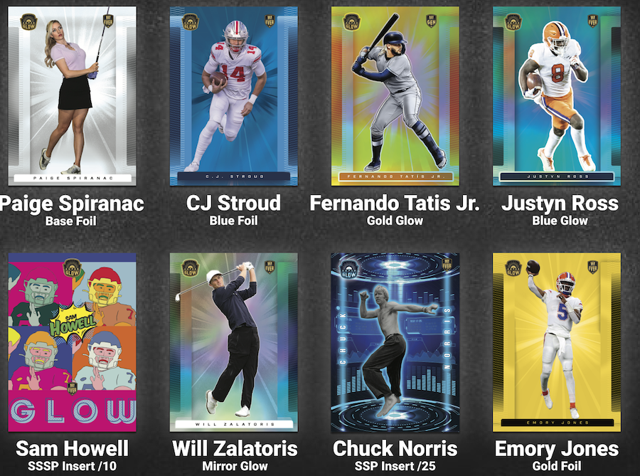 The Basics: There will be more than 20 athletes signed to early NIL deals among a lineup that will include 70 stars -- a roster that includes the likes of Fernando Tatis Jr., Mike Tyson, Chuck Norris, Trevor Lawrence and other notables along with names you may need to know in the future. (The first 24 names revealed are revealed below.) ... There will be one auto, four Glow cards and two inserts per box with jumbo memorabilia cards in every fourth box ($149.99 suggested retail price). Also in the mix will be dual-, triple- and six-auto cards. ... Some of the parallels teased include Gold Glow, Blue Glow, Mirror Glow and Gold foil, while some of the inserts will include Pink Colorways, Glow Diecuts and Super Hot Lava cards. ... Another part of this one will be a "Super Collector Player Chase" with 1/1 autos rewarded to the first collectors who amass the player's master collection. ... Memorabilia cards will include shoes, cleats, jerseys, workout gear, gloves and other items all coming from the athletes themselves.